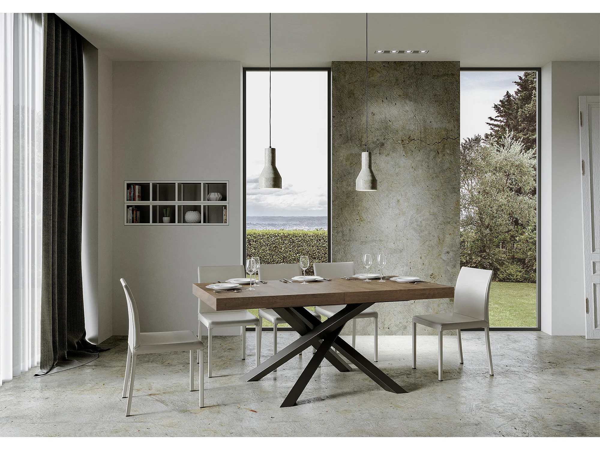 Table extensible 200/304x90 cm Volantis noyer pieds anthracite