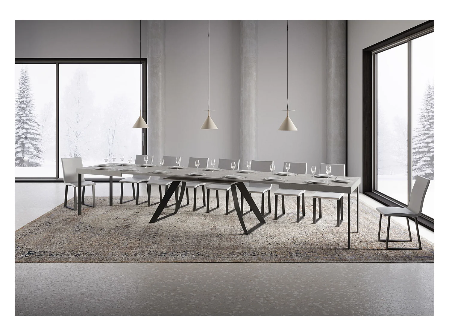 Table extensible 90x200/460 cm Volantis Gris Béton cadre 4/C
