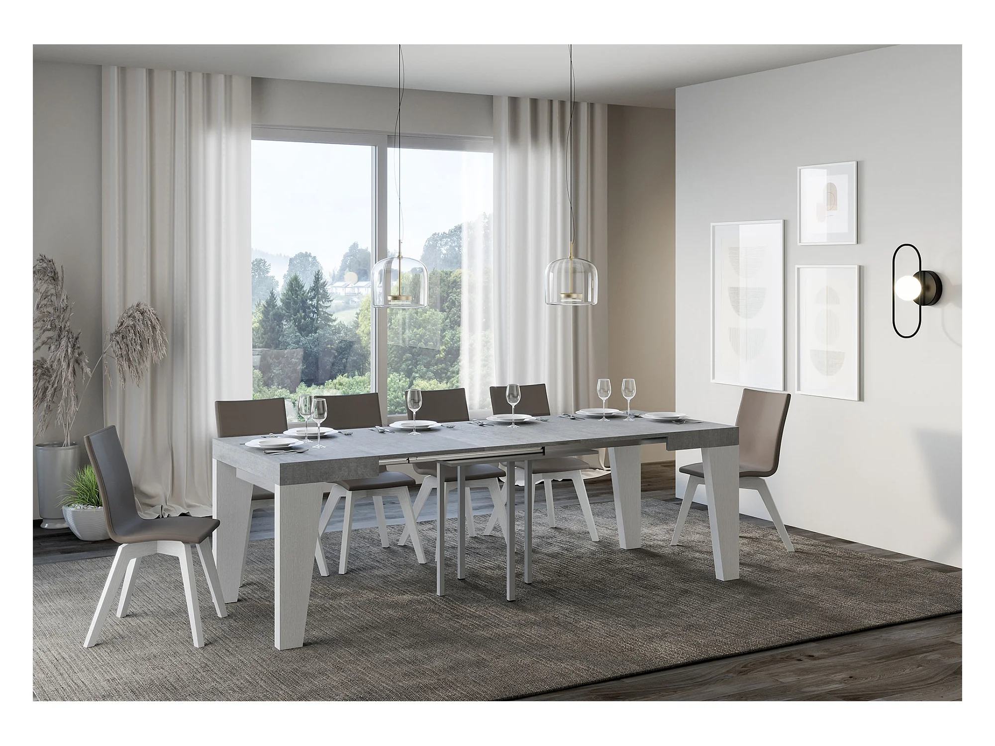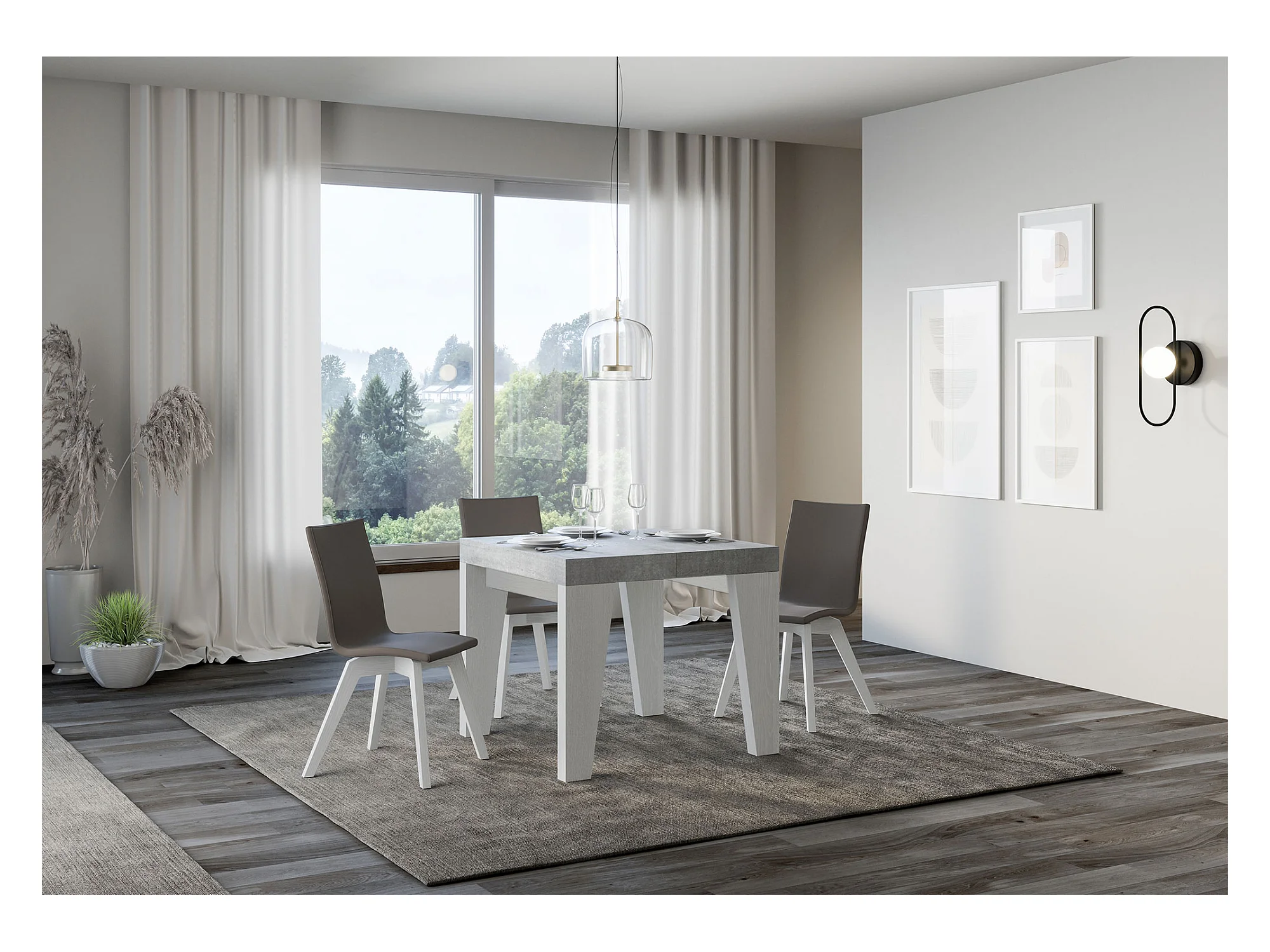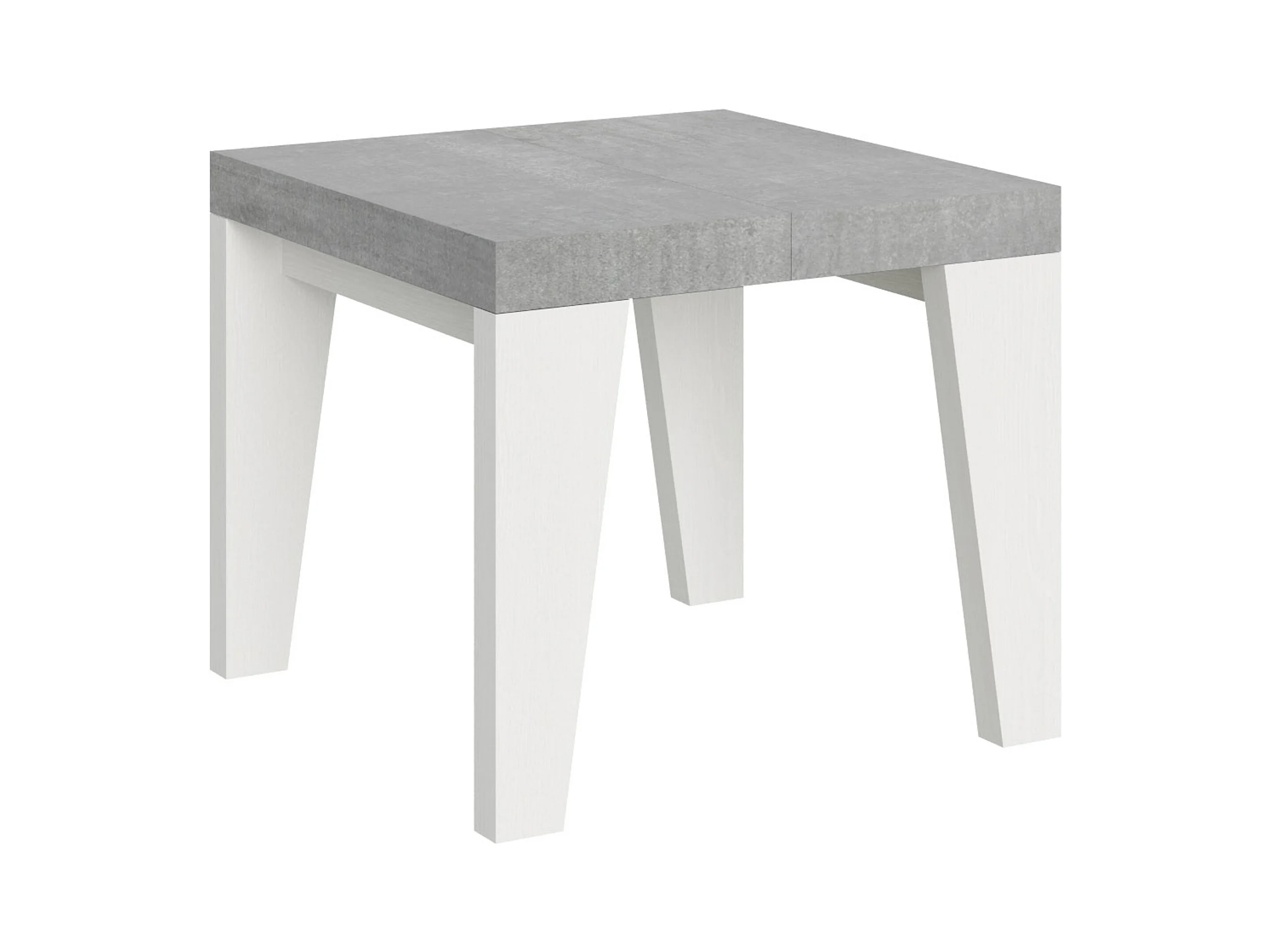 Table extensible 90x90/246 cm Naxy Mix dessus Gris Béton pieds Frêne Blanc