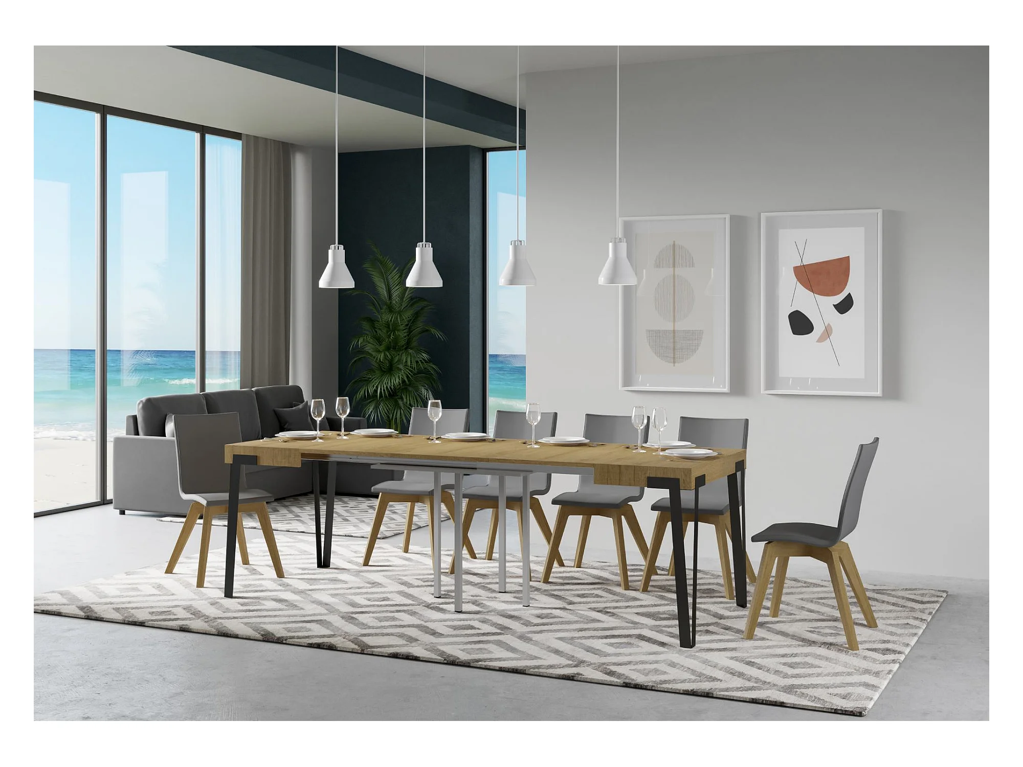 Table extensible 90x90/246 cm Rio Chêne Nature cadre Anthracite