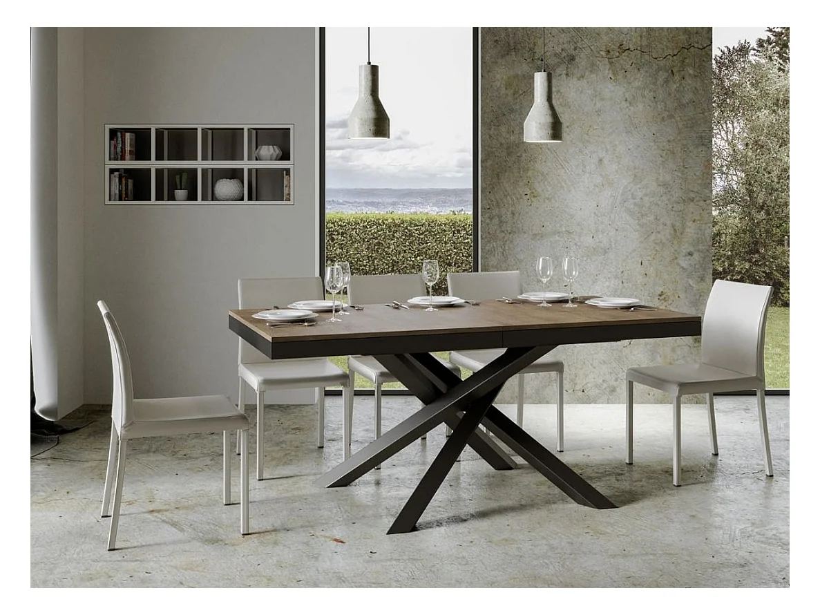 Table extensible bois marron et cadre anthracite 160-264cm Klass