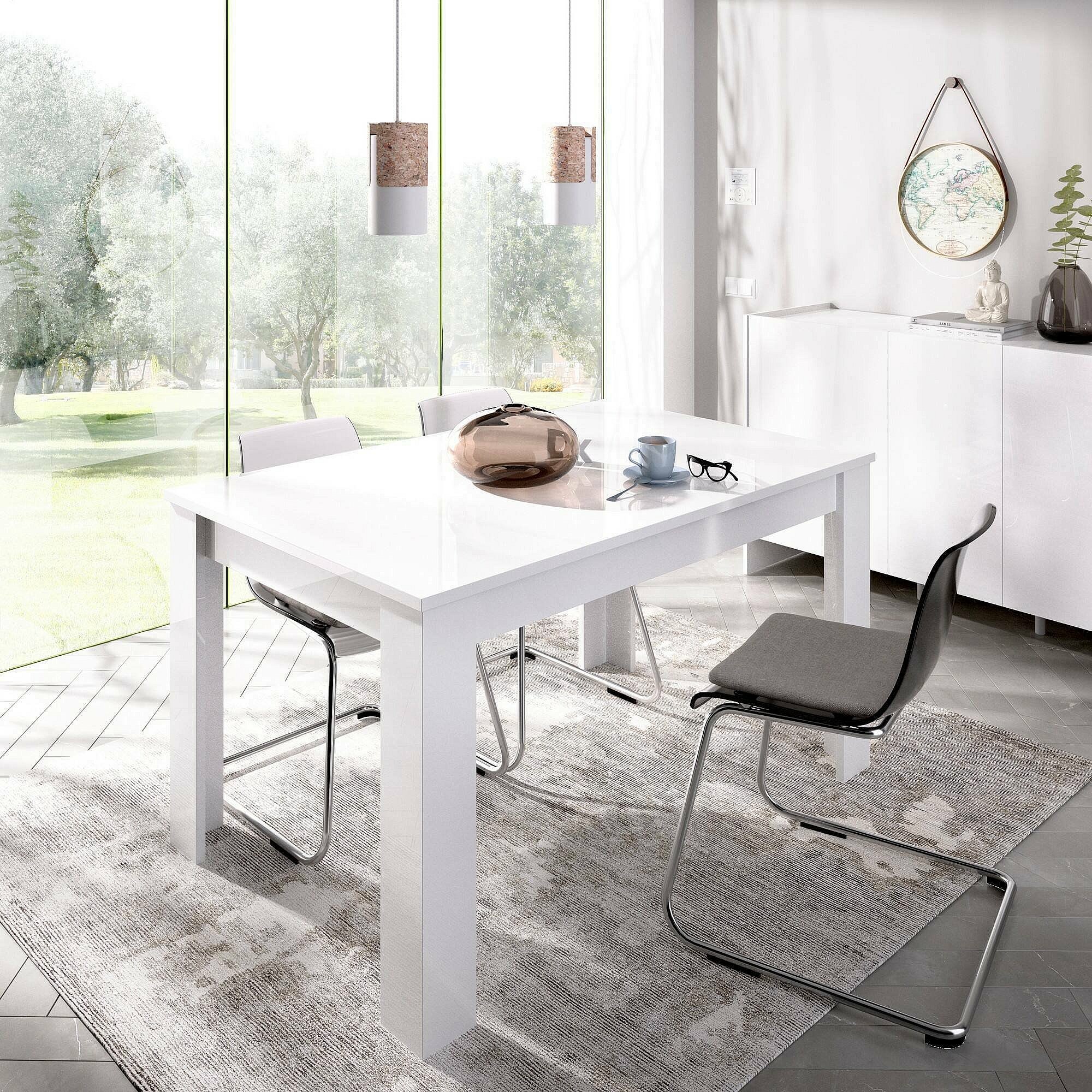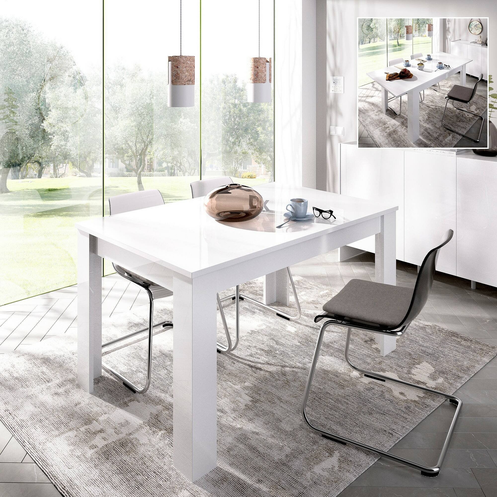 Andy|Table à manger en blanc brillant avec rallonge 8 personnes L180