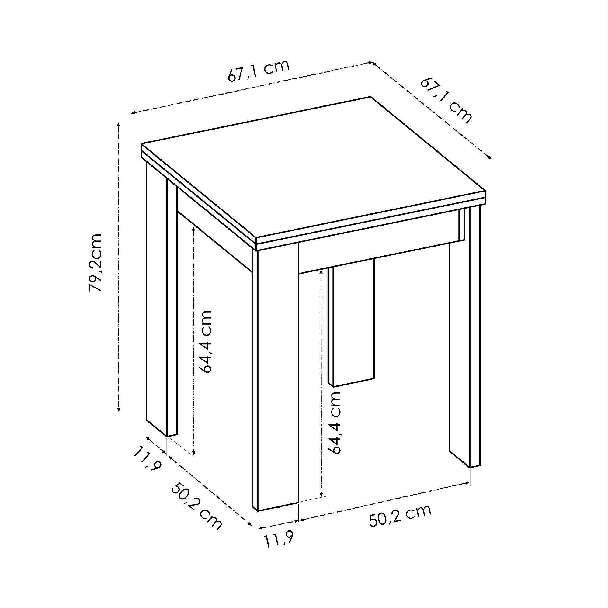 Table extensible Dbli, Console extensible multi-positions, Table console auxiliaire pliante, 79/134x67h79 cm, Chêne