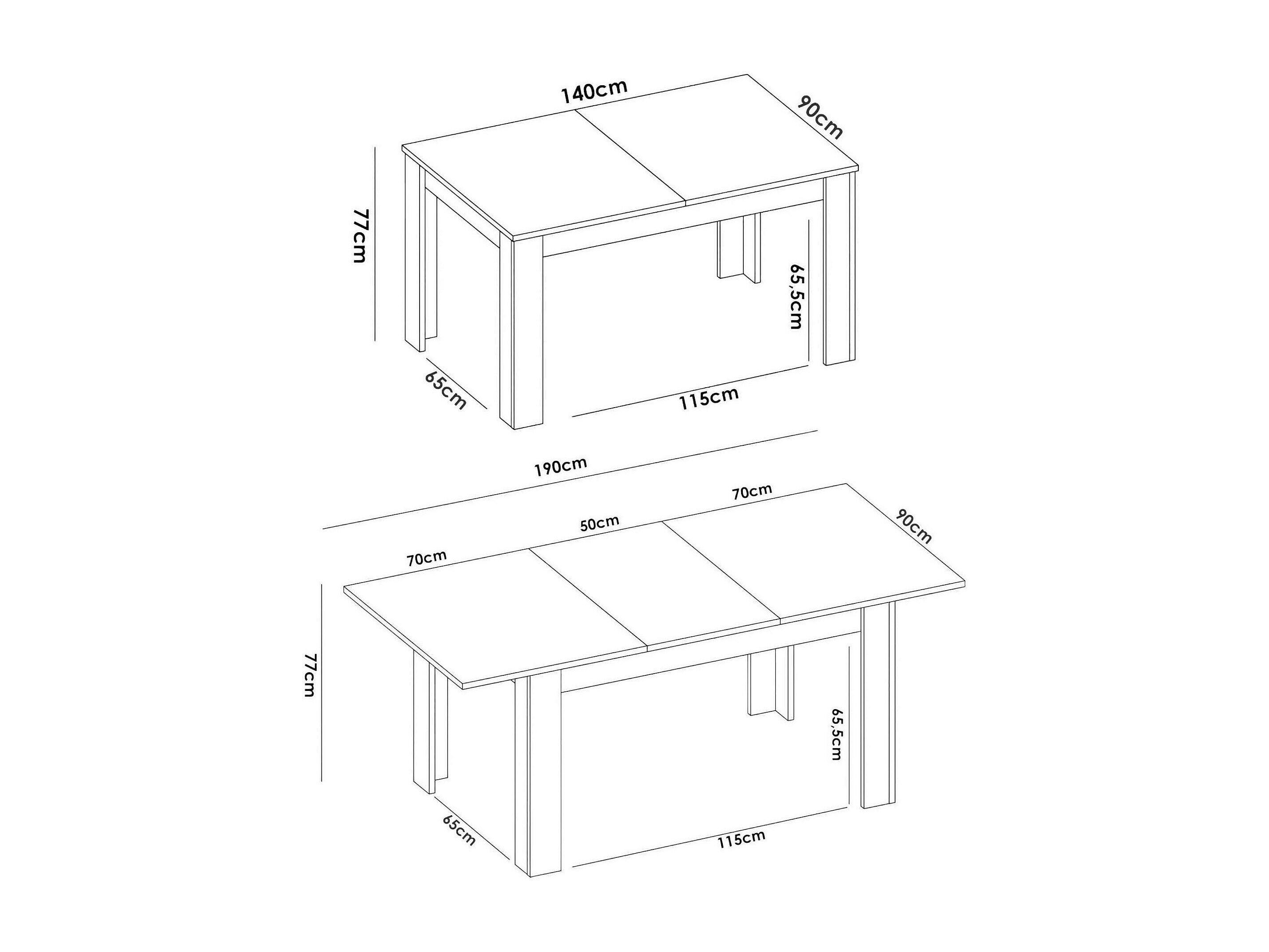 Table à manger extensible Tiroz-Couleur Naturel-4 pieds-2 rallonges fines-130 à 234cm