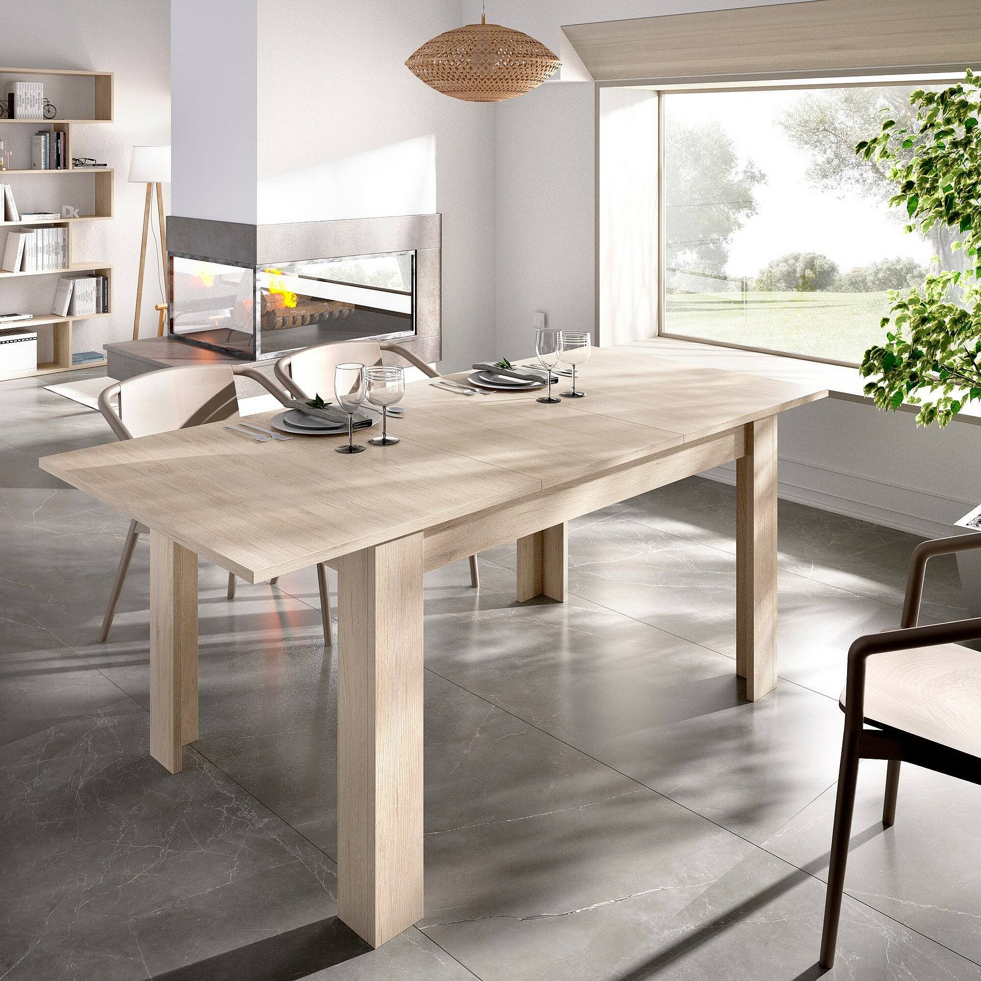 Table à manger extensible Tiroz-Couleur Naturel-4 pieds-2 rallonges épaisses-130 à 234cm