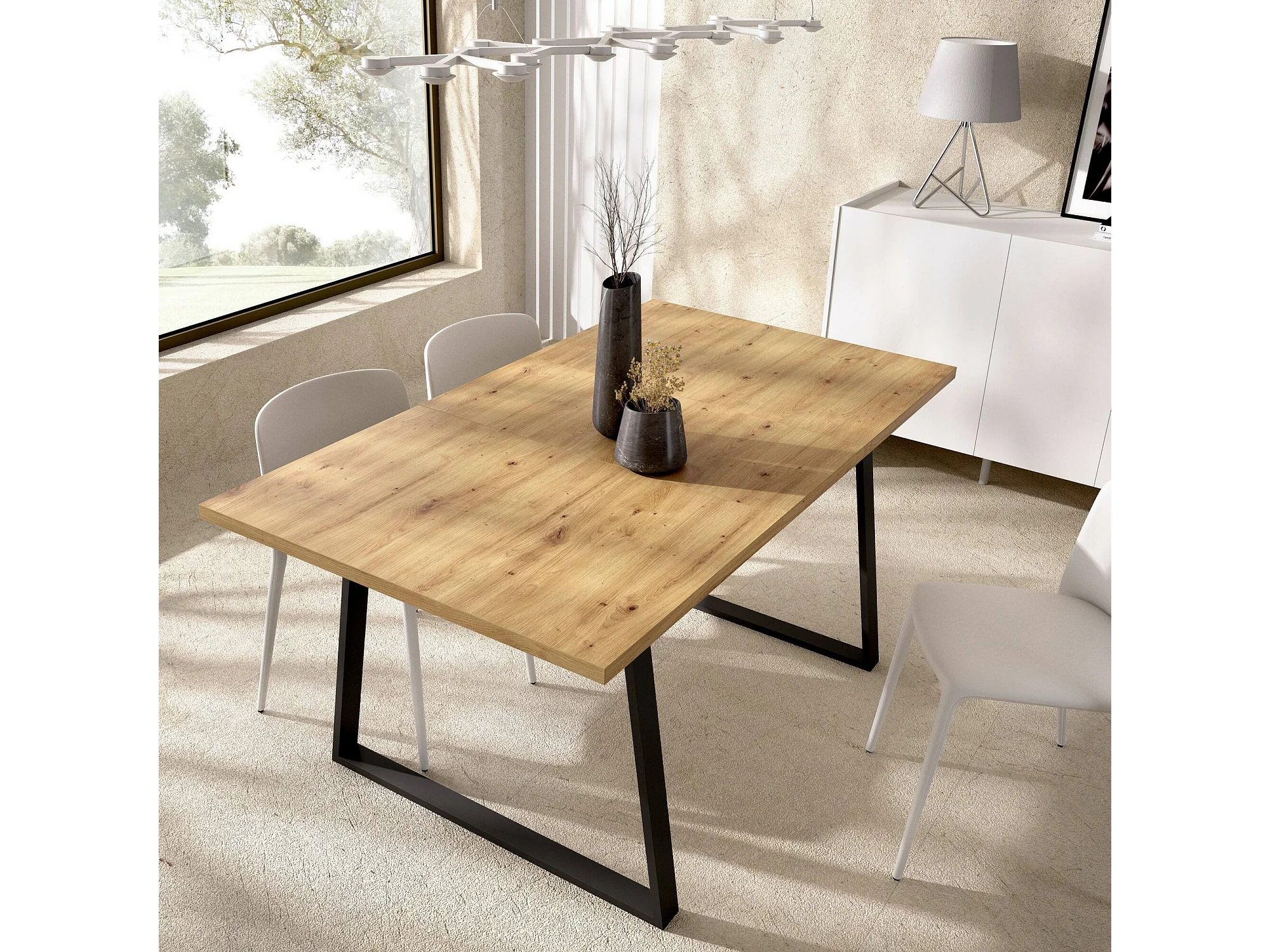 Table extensible Darsla, Console de salle à manger polyvalente, Table rectangulaire de cuisine ou de salle à manger, 160x90h75 cm, Chêne Nodi