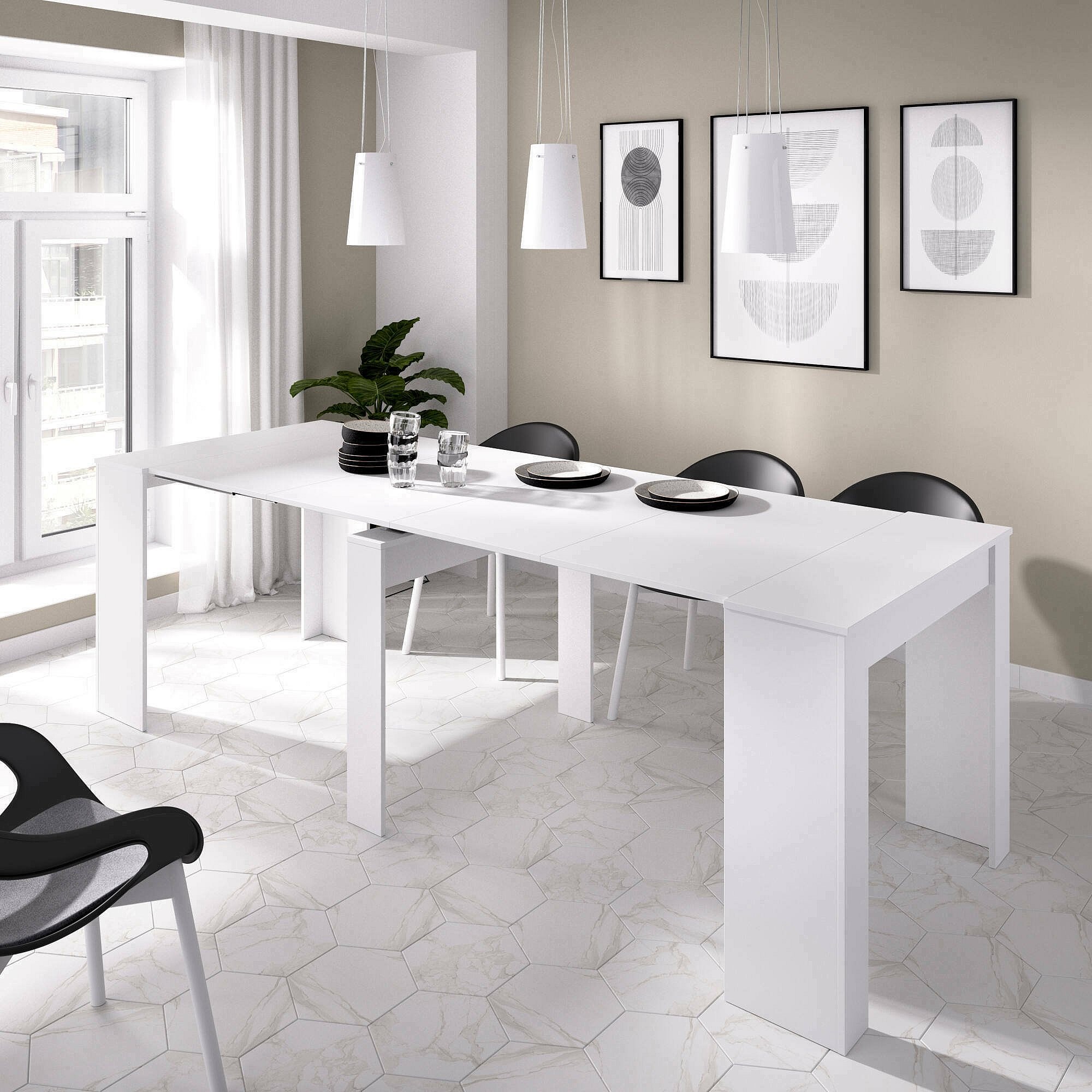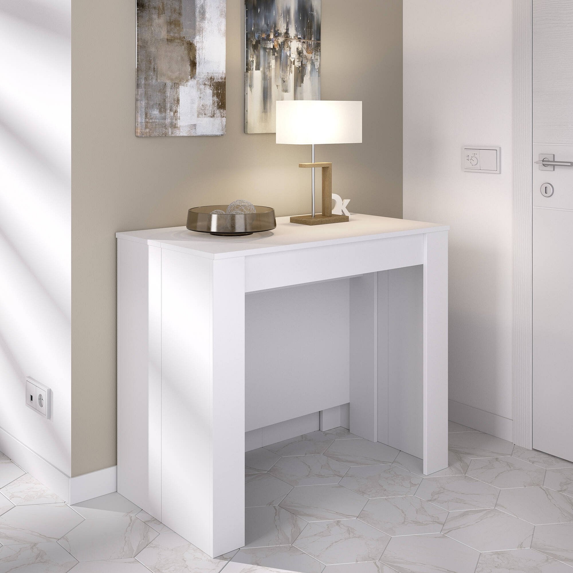 Console extensible Dbiragh, Table à manger polyvalente, Console extensible multiposition avec support d'extension inclus, 54/239x90h77 cm, Blanc