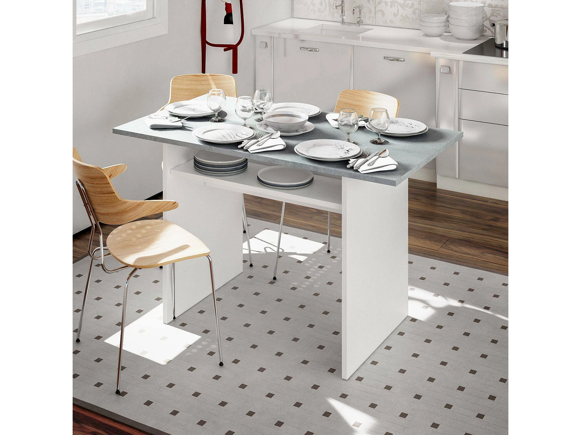 Table extensible Ddiaz, Etagère extensible avec ouverture rabattable, Table console d'appoint pliante, 120x35h77 cm, Blanc et Ciment