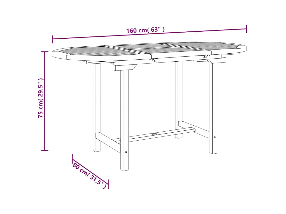 Table extensible de jardin (110-160)x80x75 cm Teck solide