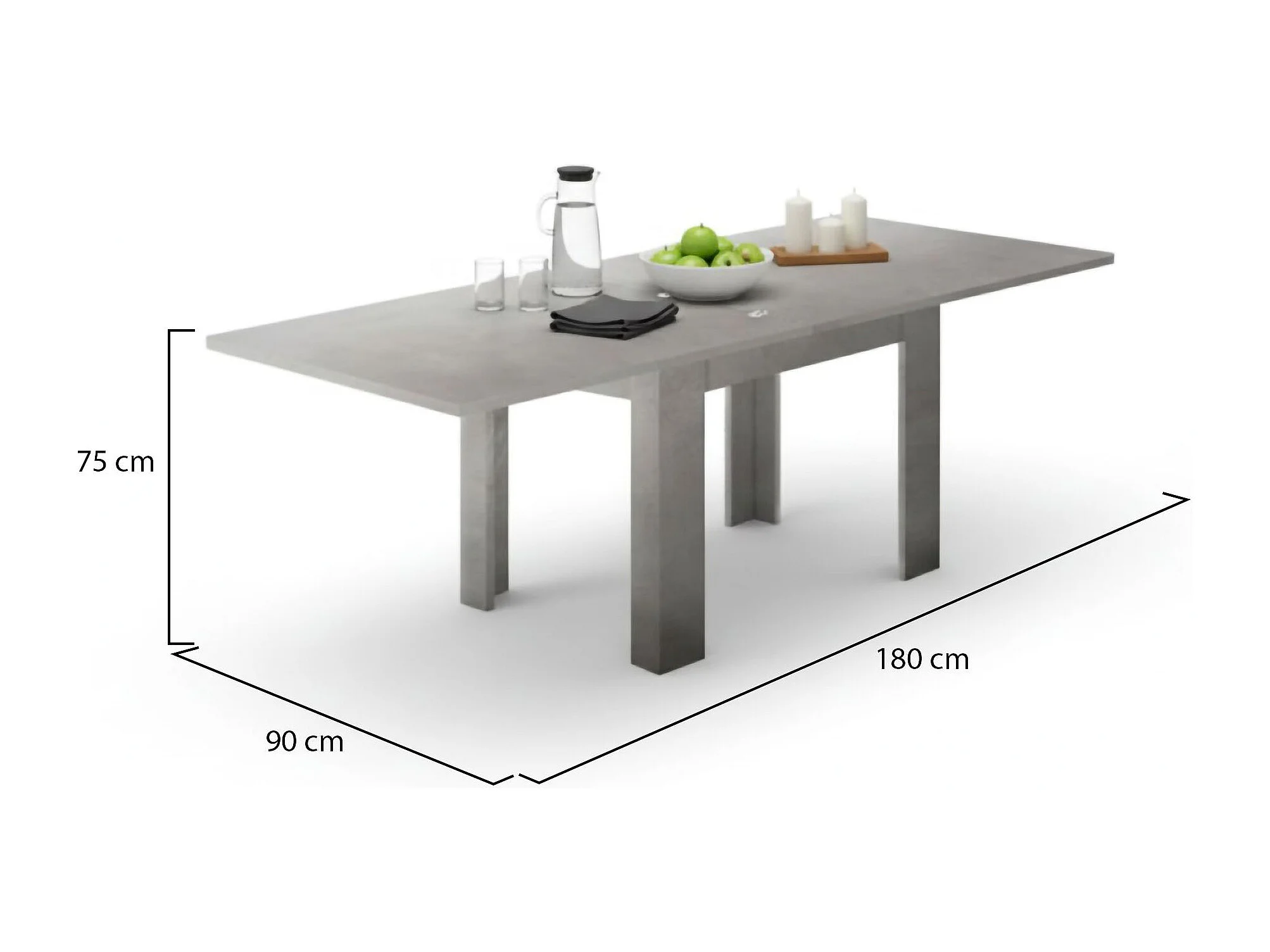 Table extensible Otto, Console auxiliaire de cuisine, Table extensible, 100% Made in Italy, 90x90h75 cm, Gris