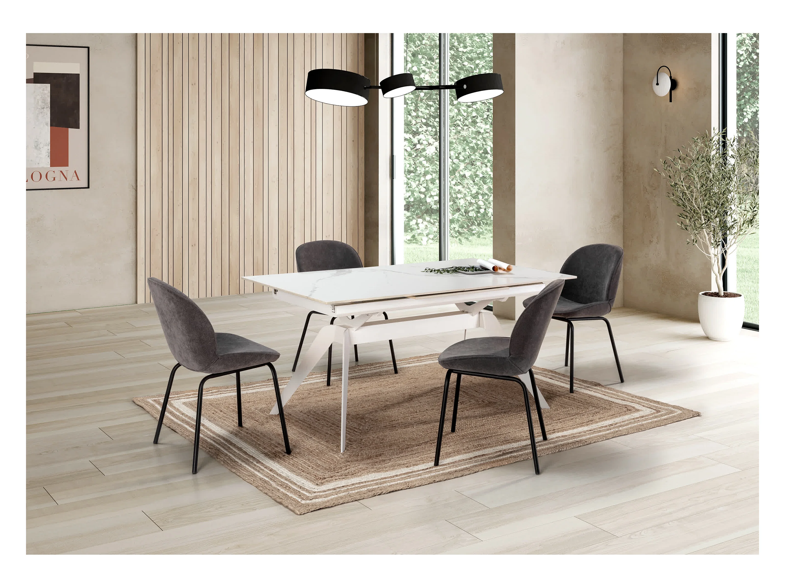 Table à manger design extensible blanc mat et pieds métal blanc Reina 160 à 210cm