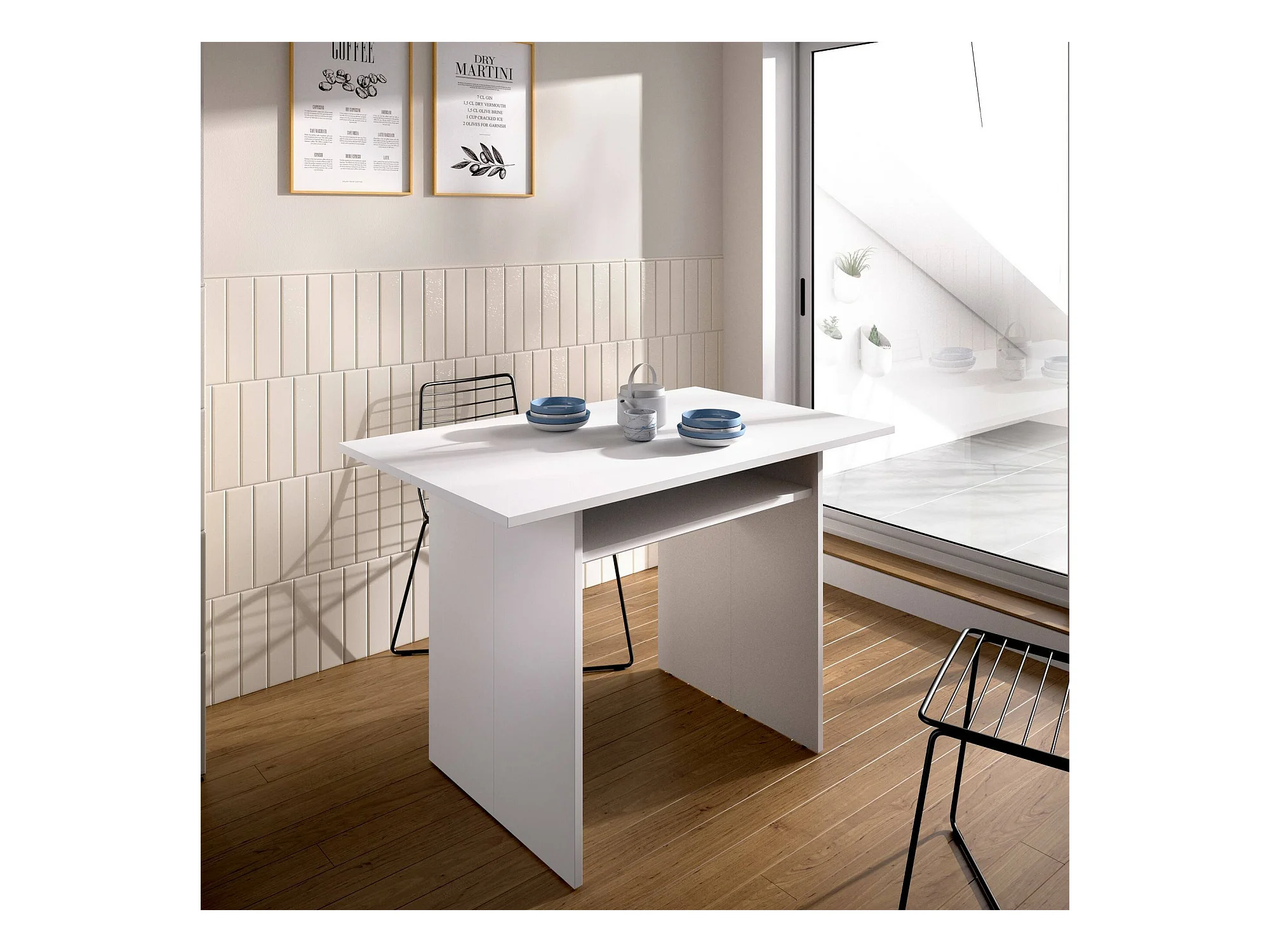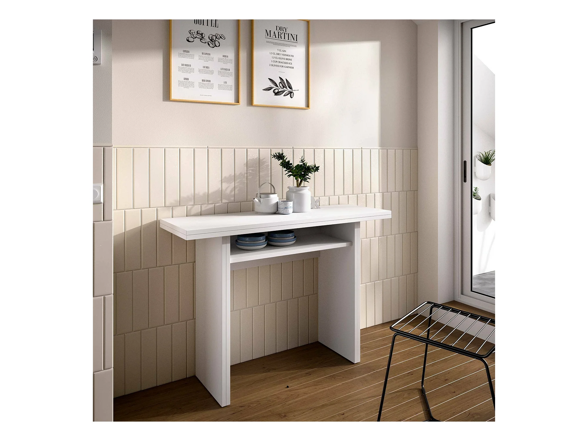 Console extensible Dmanuel, Console auxiliaire extensible multi-positions, Table à manger pliante avec plateau rabattable, 110x33/66h75 cm, Blanc