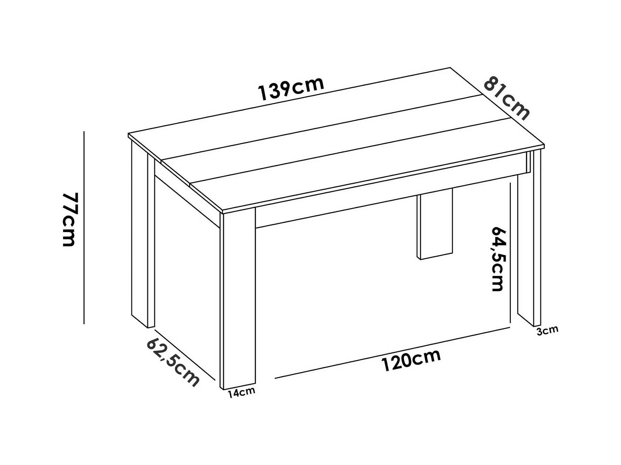 Table fixe Censo, Etagère à manger polyvalente, Table rectangulaire de cuisine ou de salle à manger, 139x81h77 cm, Chêne Nodi