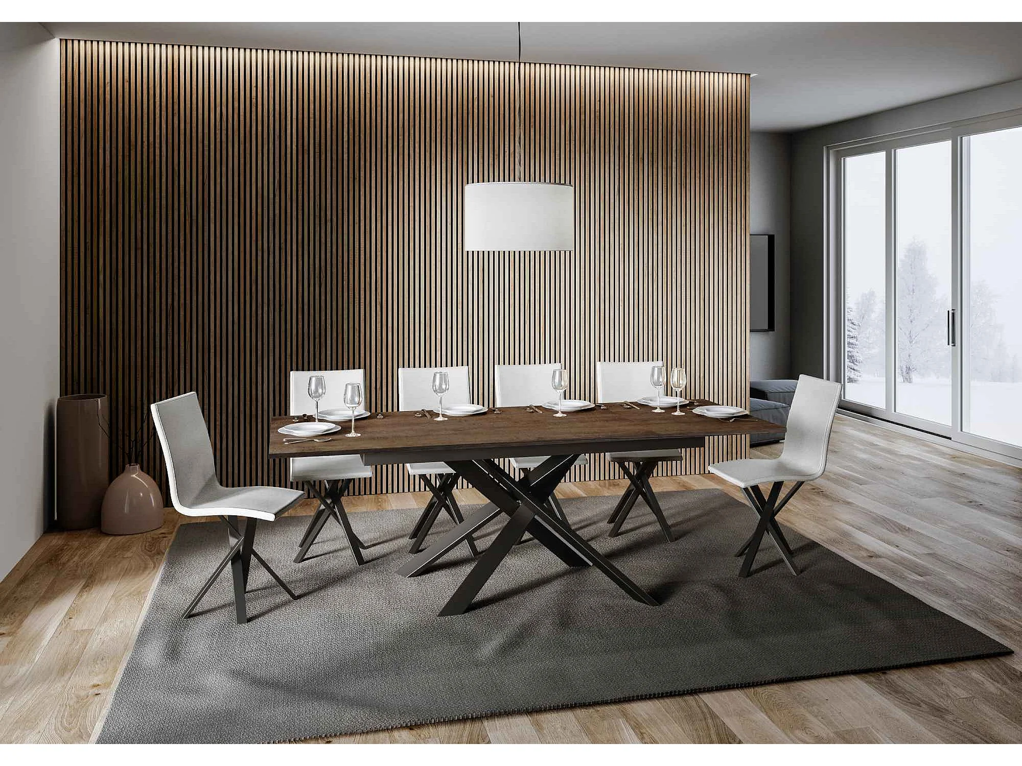 Table extensible 90x160/220 cm Ganty Noyer bande de chante en teinte cadre Anthracite