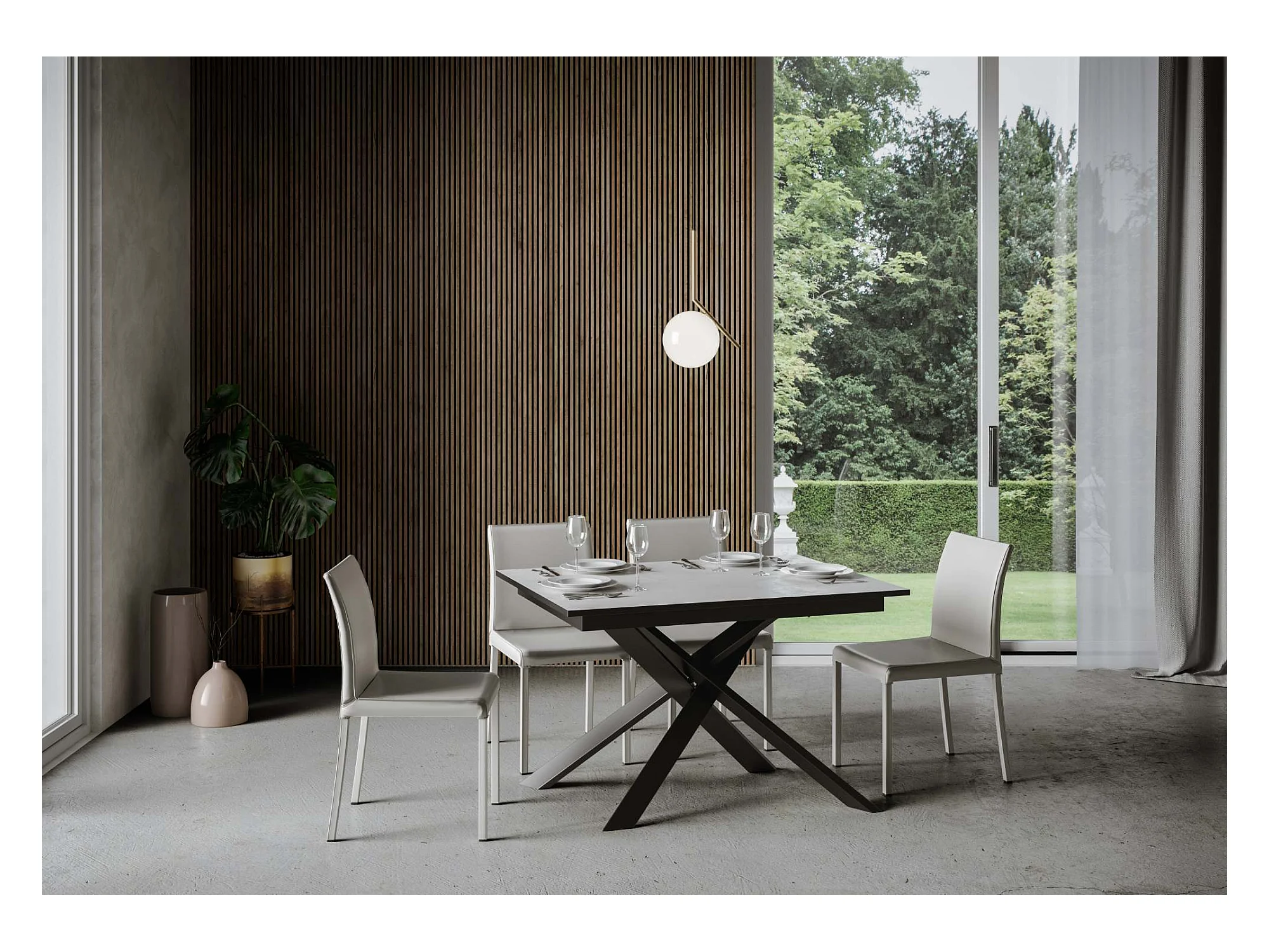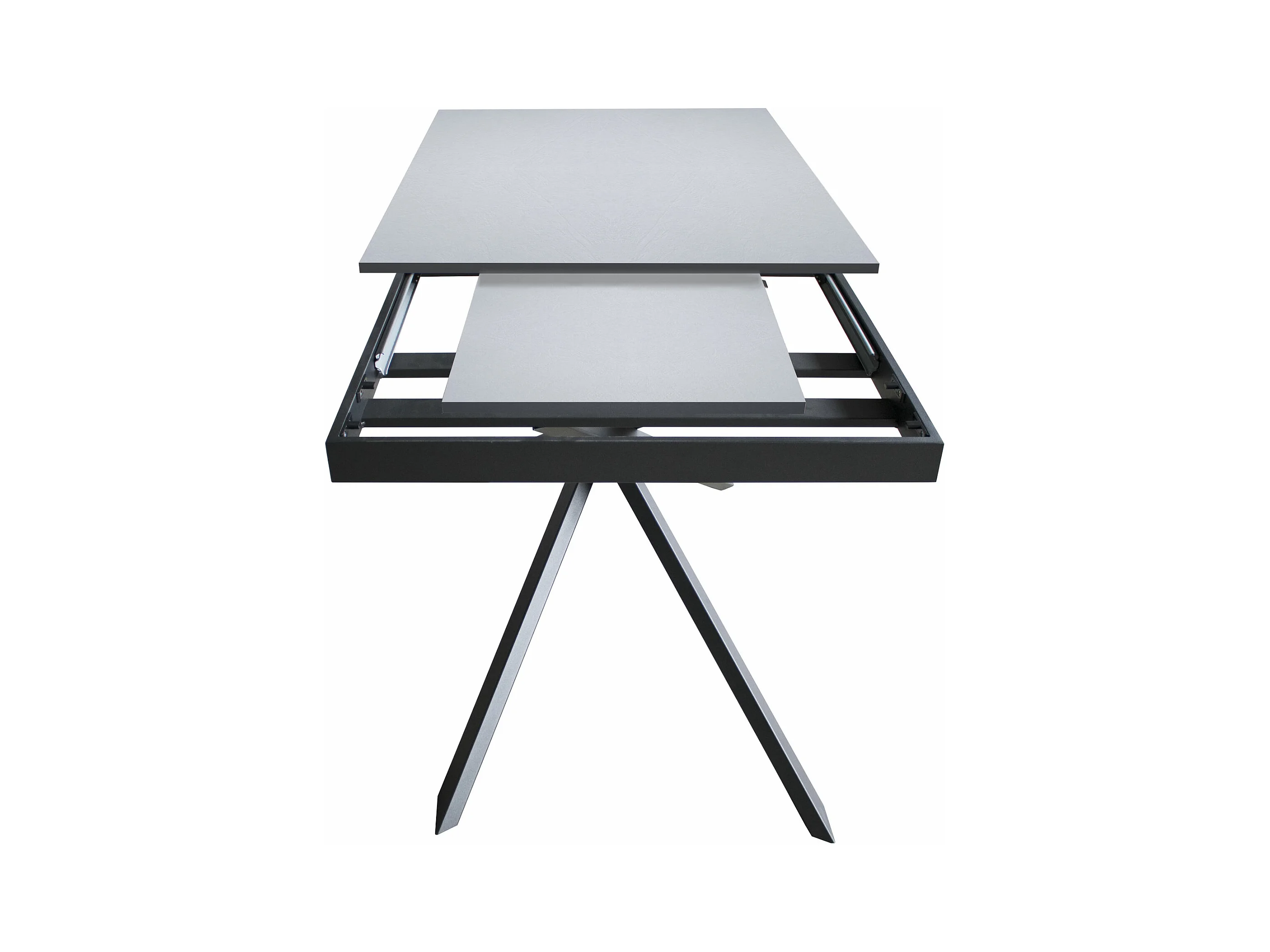 Table extensible 90x120/180 cm Ganty Blanc Spatulé bande de chante Anthracite cadre Anthracite