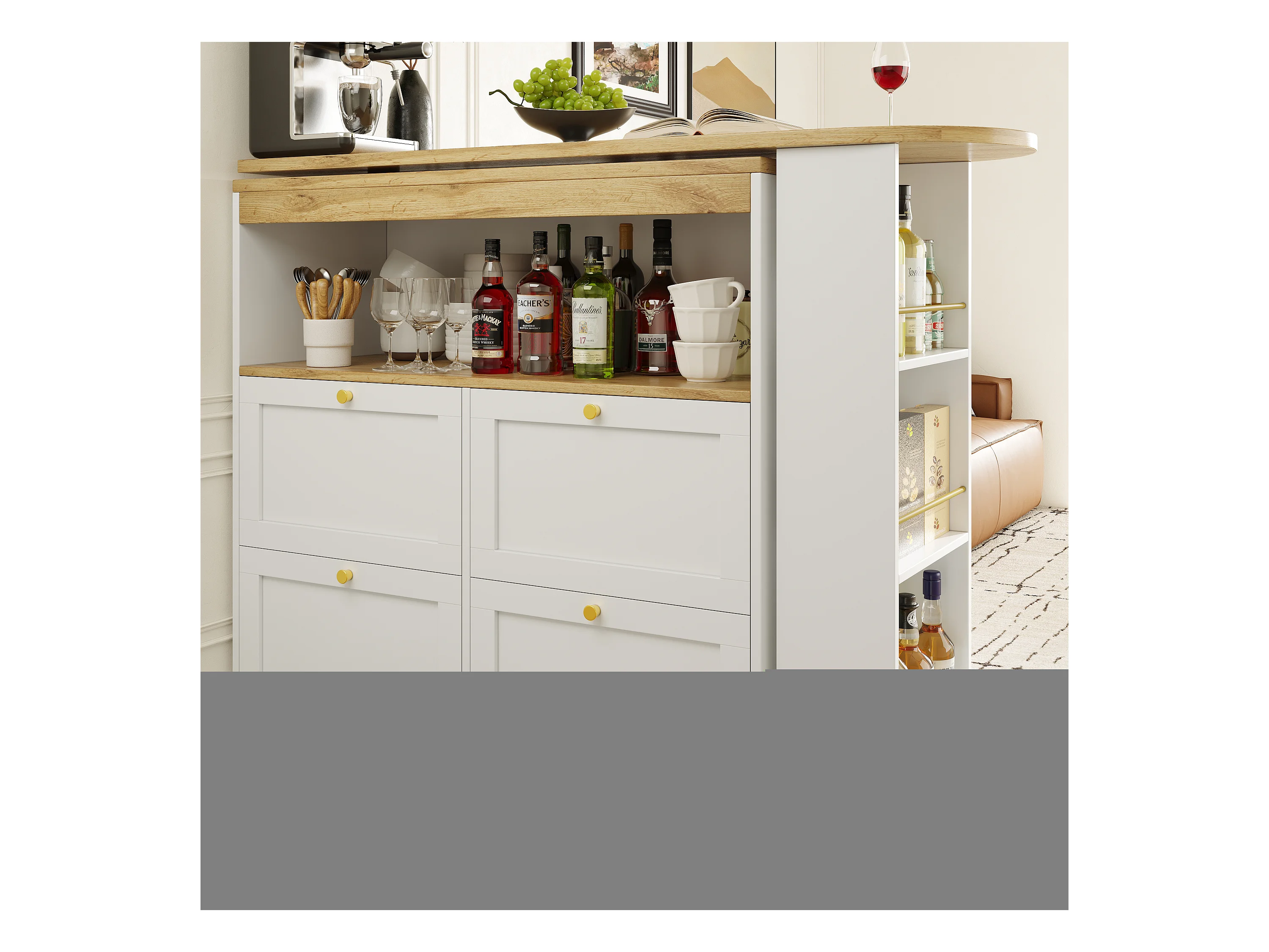 Table à Manger Multifonctionnelle Pivotante 360° + Buffet Blanc avec Compartiment de Rangement, Porte en Verre, MDF (90x45x100 cm)