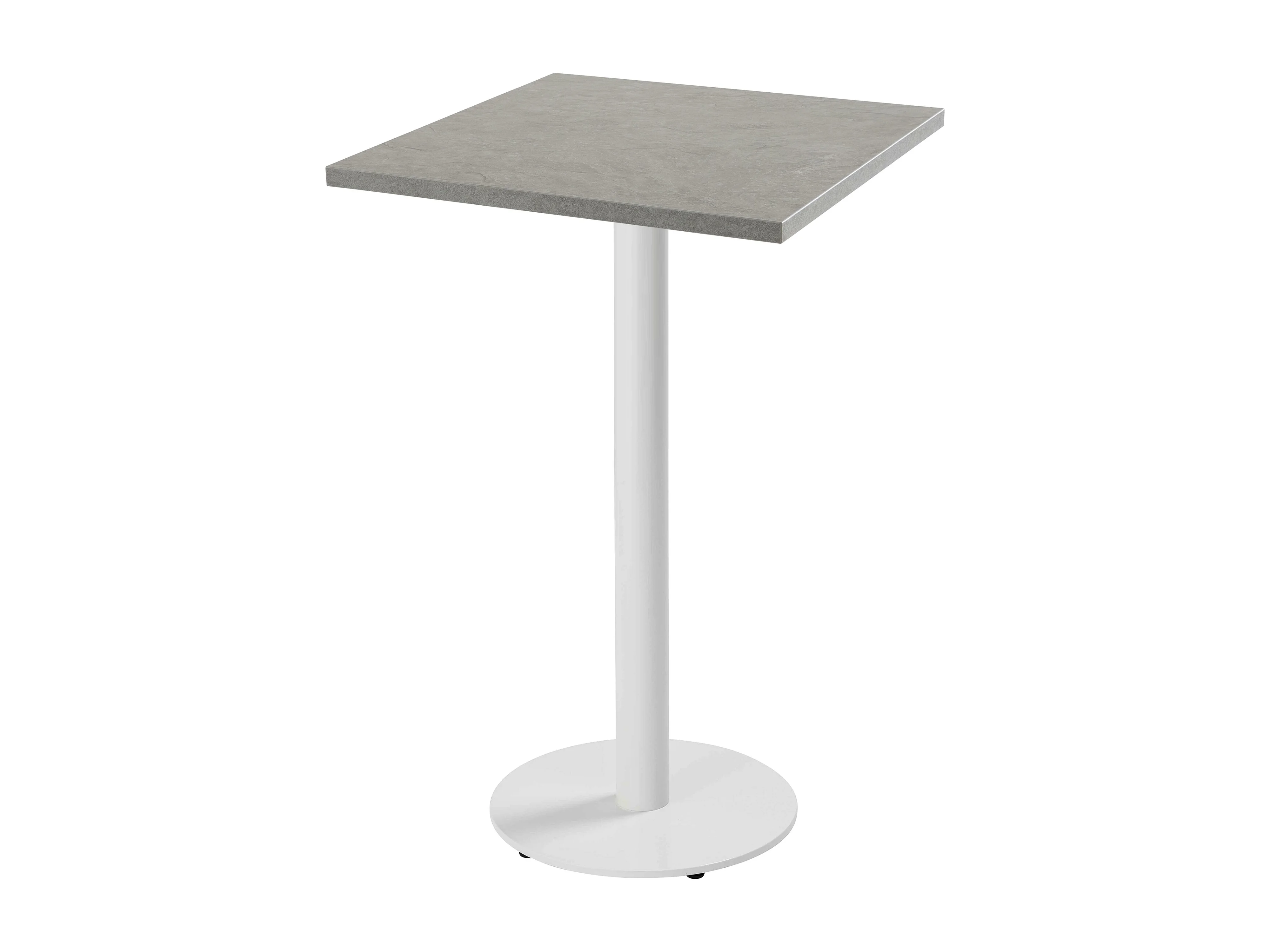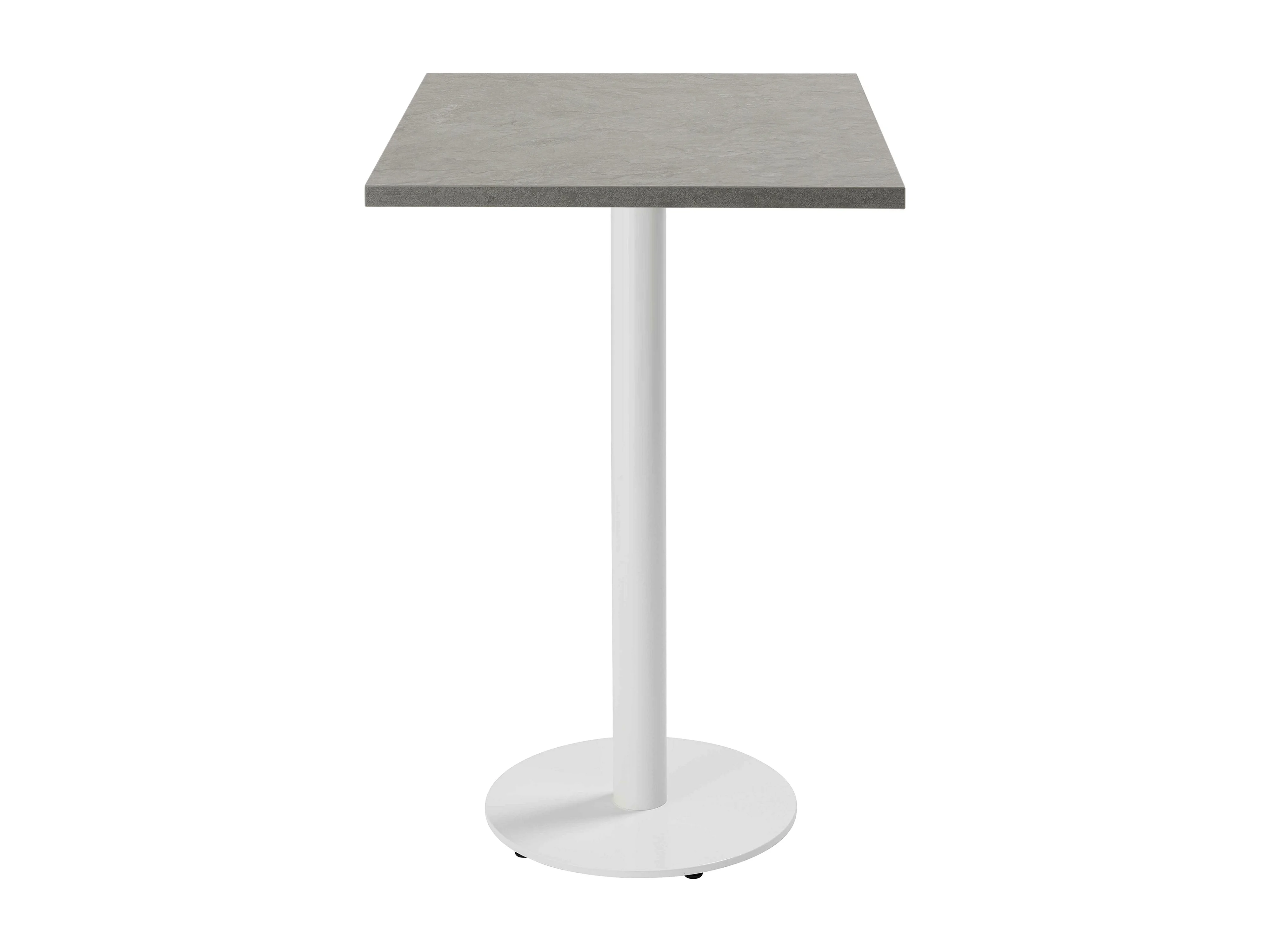 Table haute carrée 60 cm pied blanc et revêtement béton gris clair