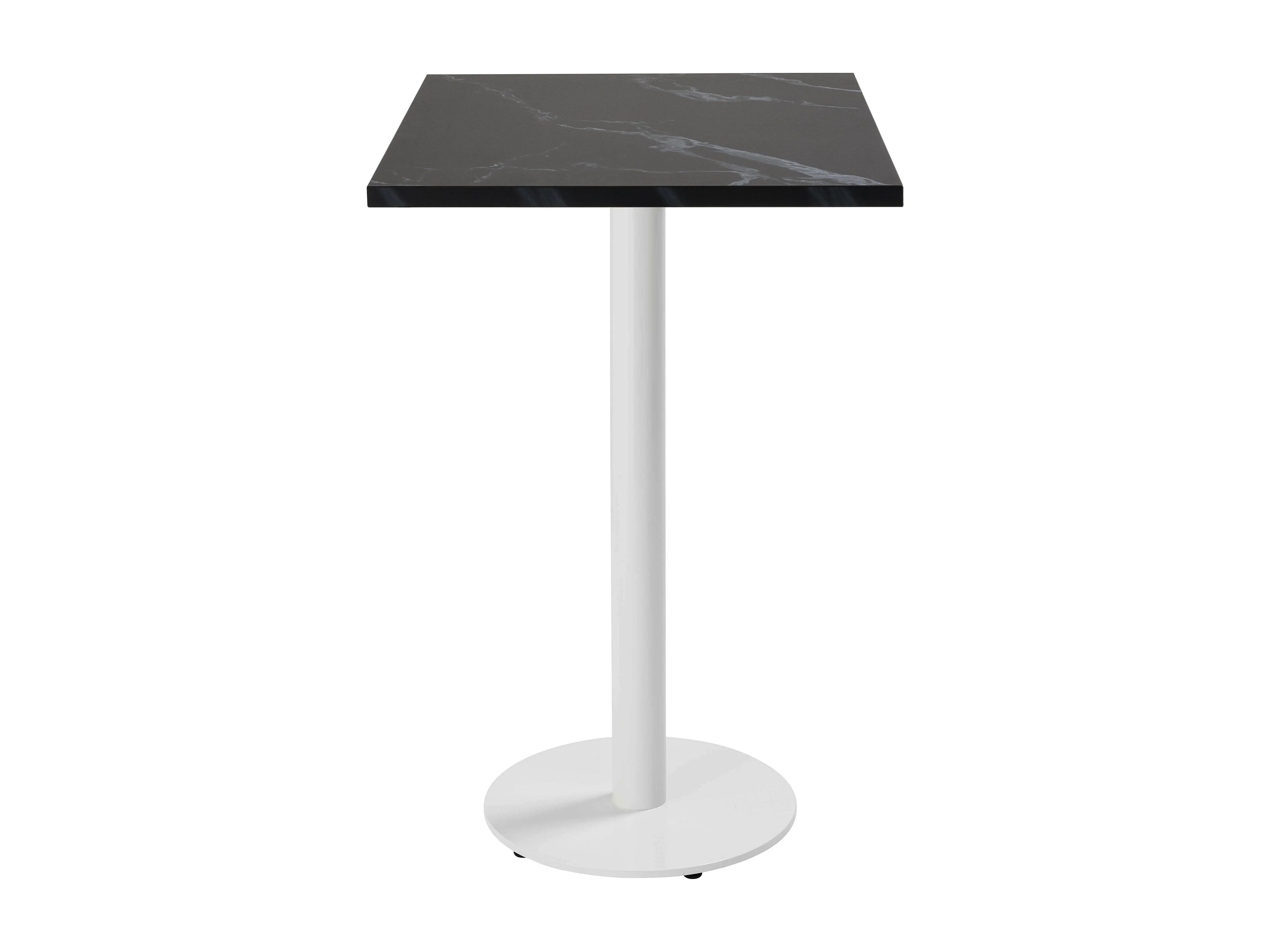 Table haute carrée 60 cm pied blanc et revêtement marbre noir
