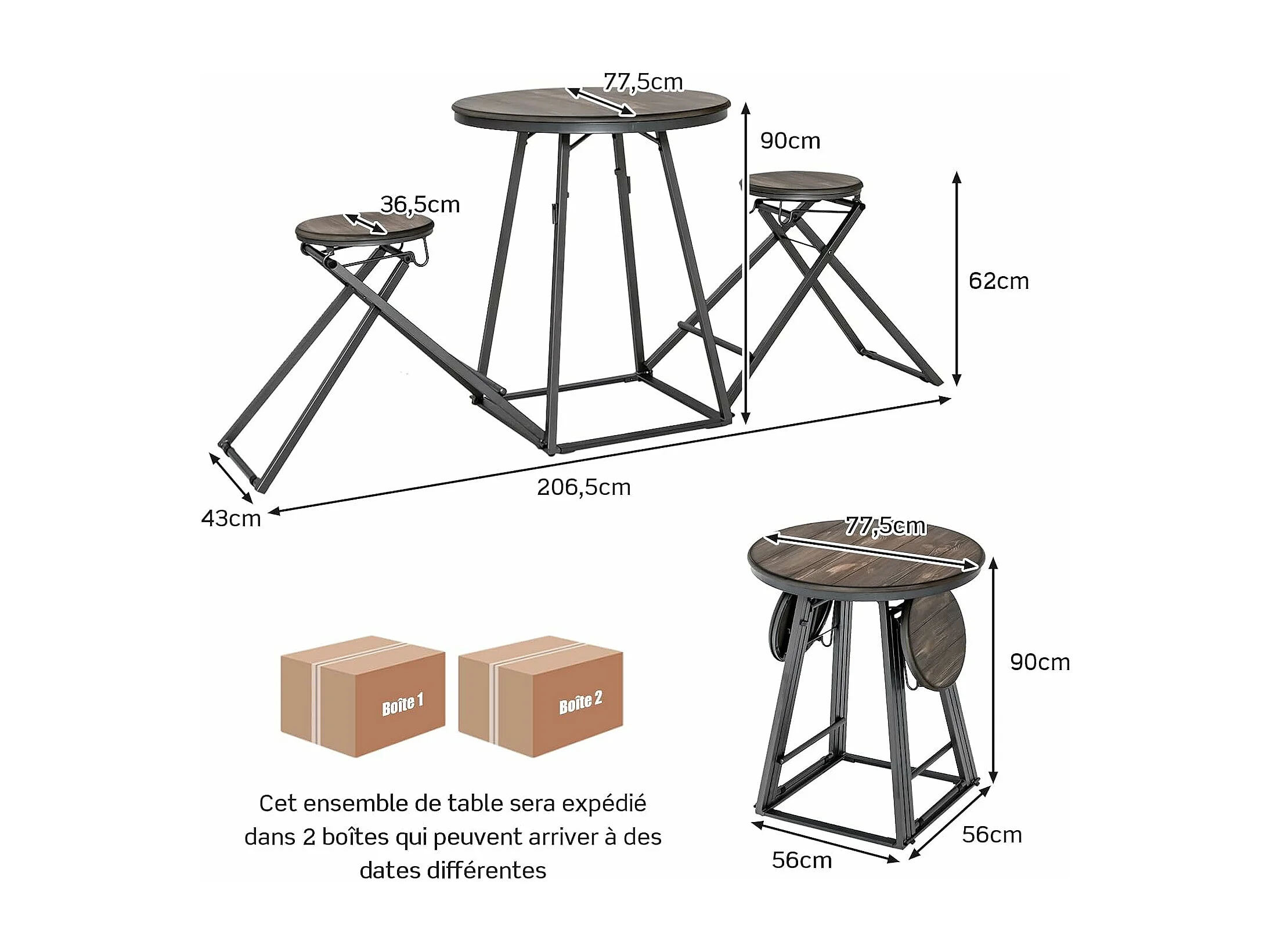 Table haute cuisine avec tabouret, industrielle pliable, mange debout 2 personnes
