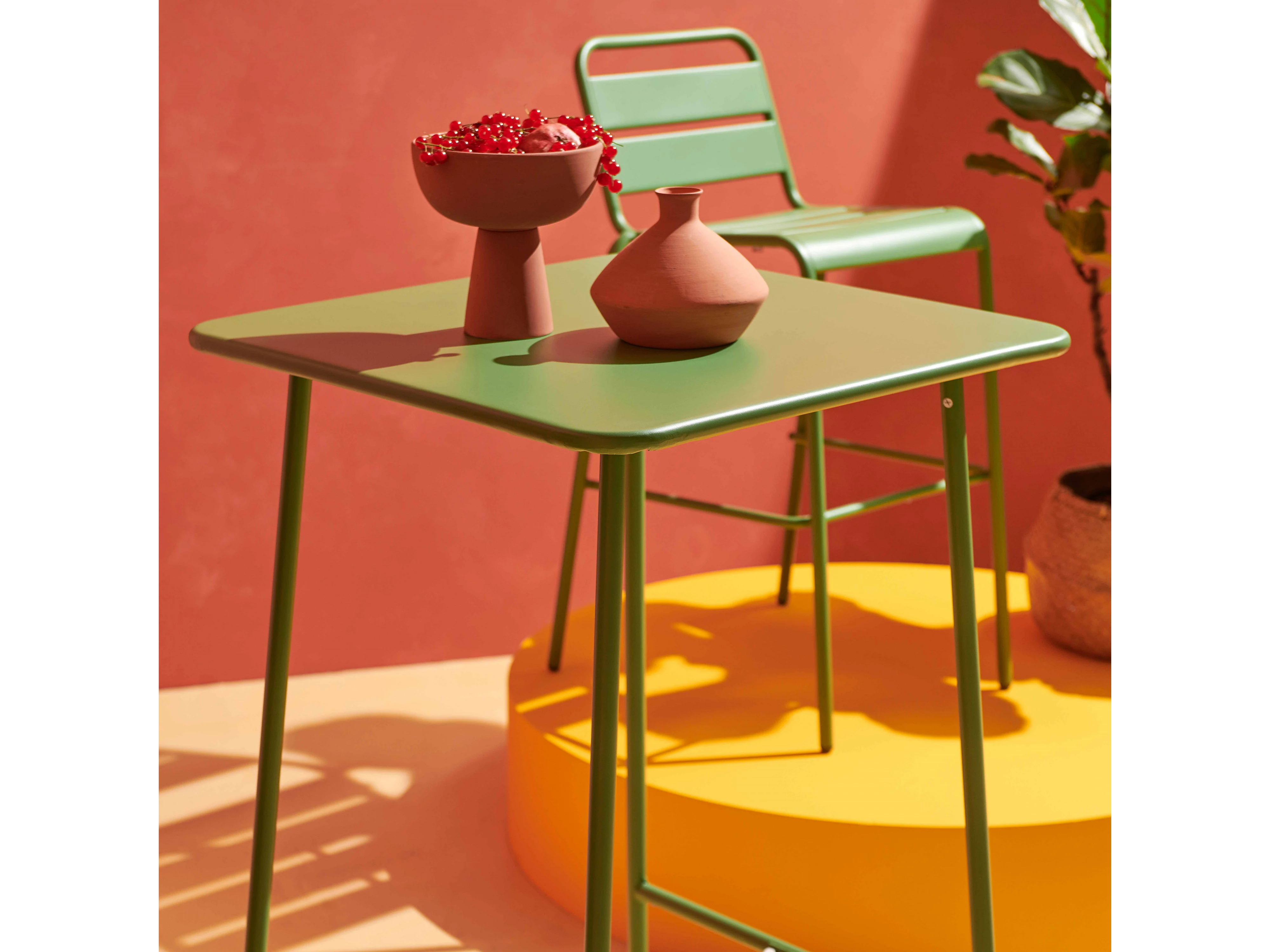 Table haute de jardin carrée en acier vert cactus - Palavas