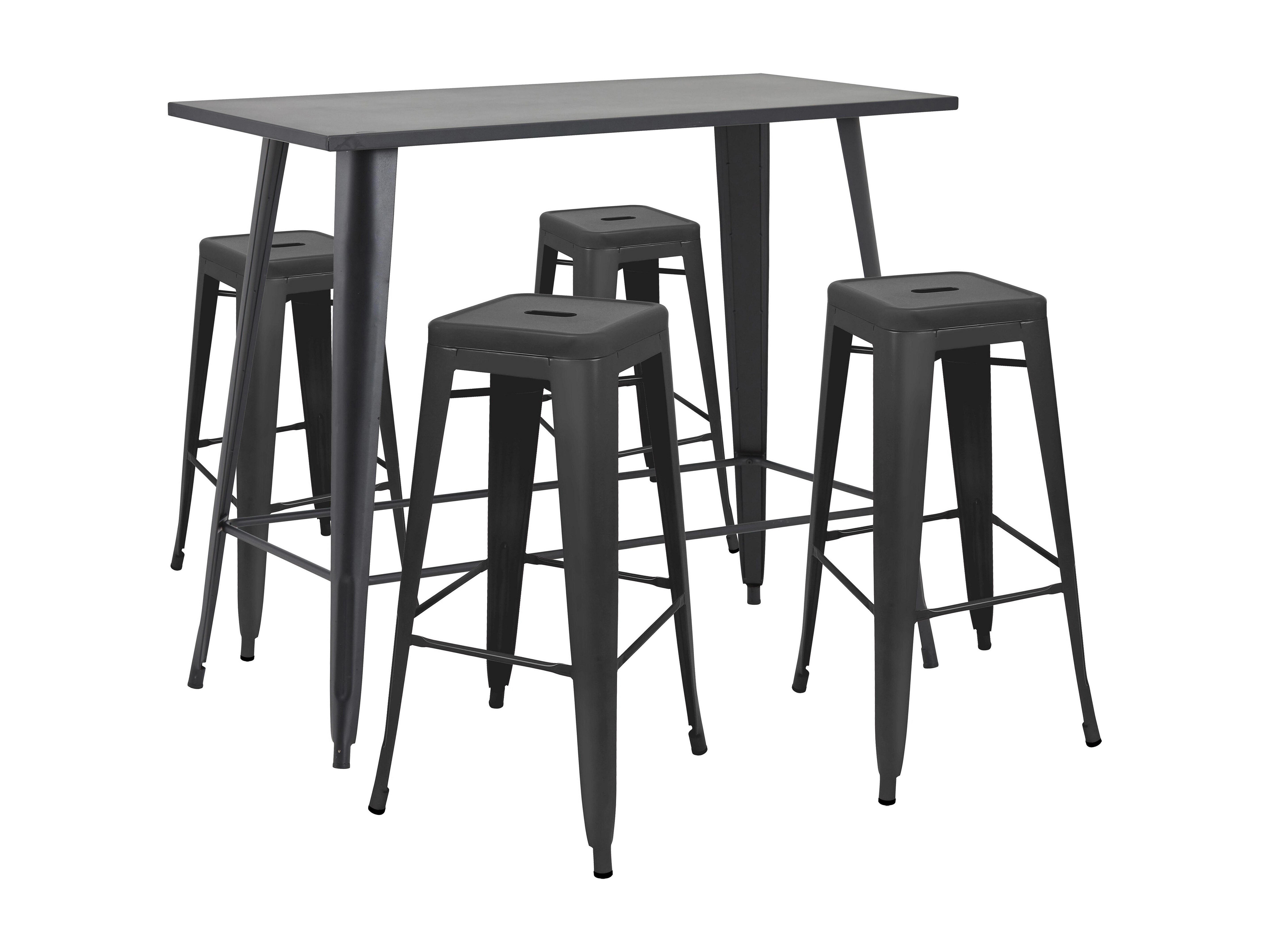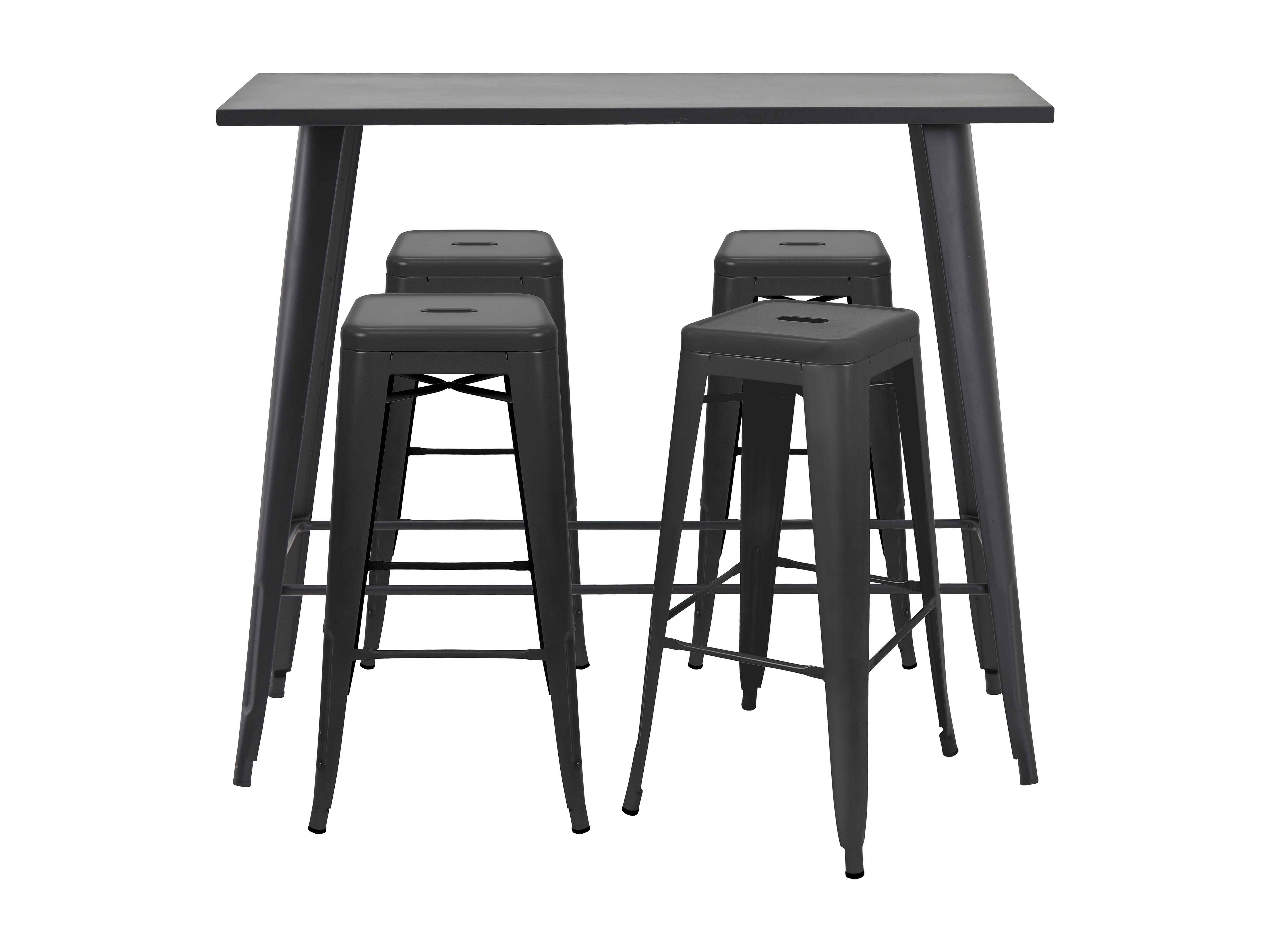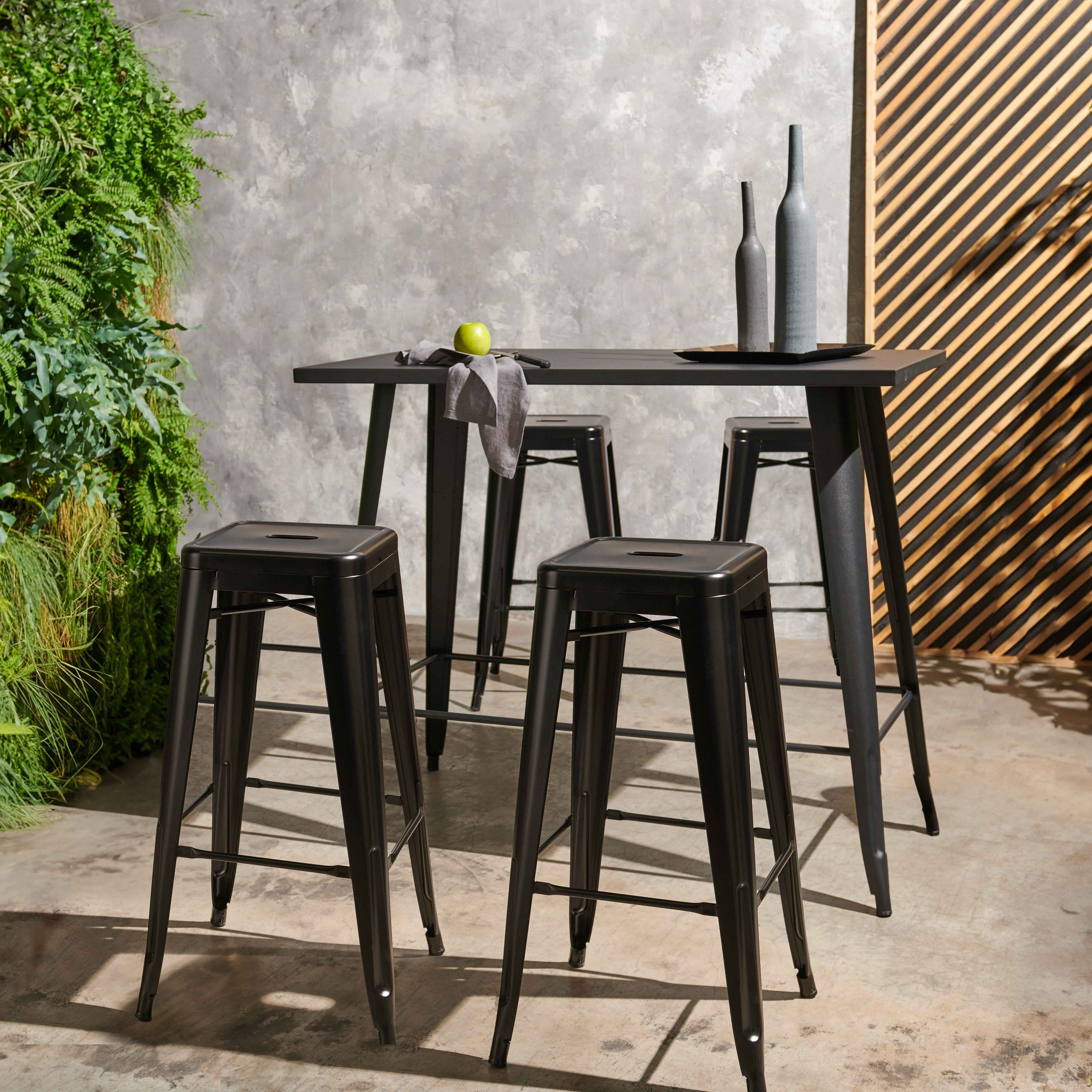 Table haute de jardin et 4 tabourets en métal noir mat