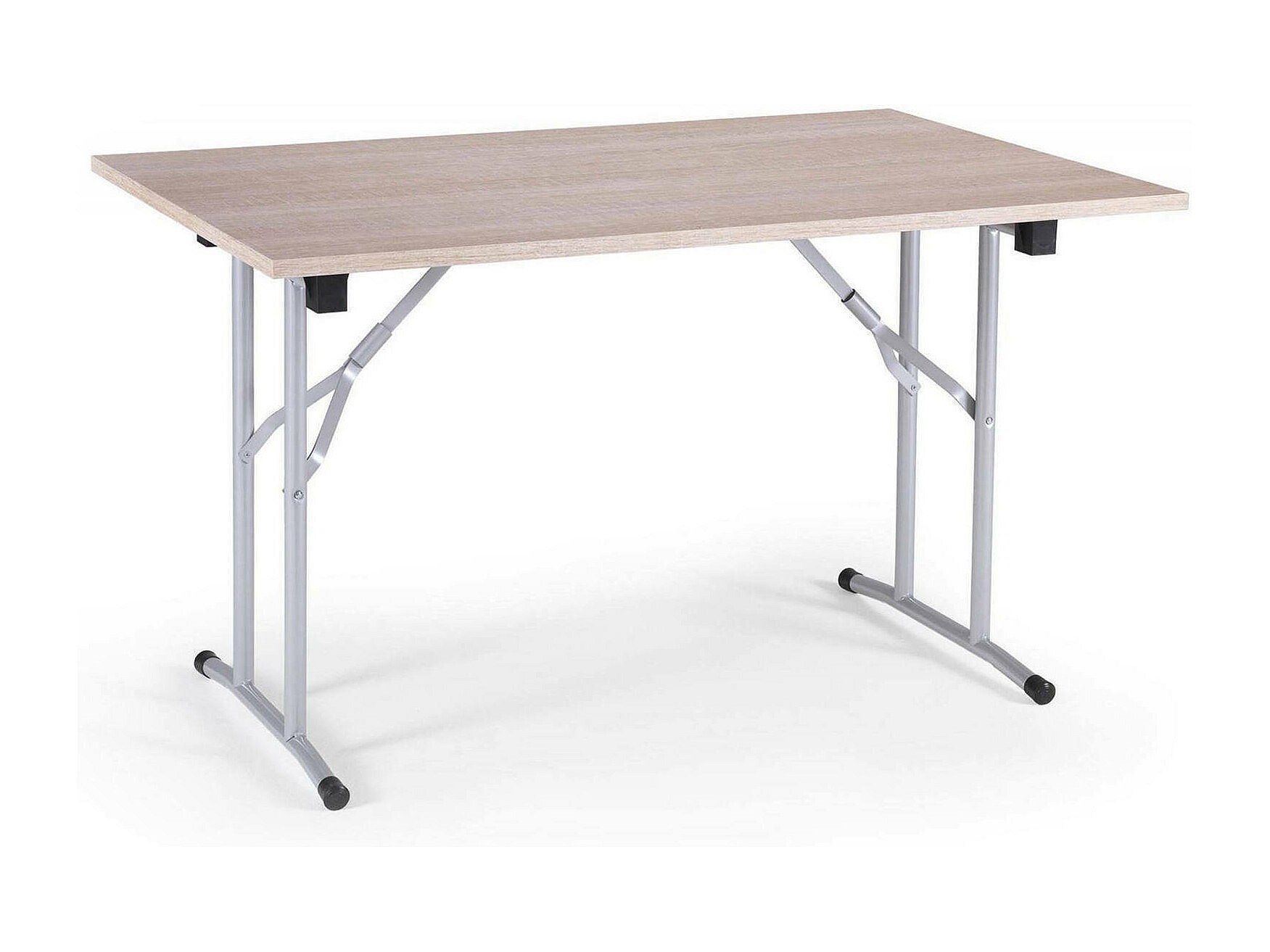 Table pliante Daccurs, Table de camping avec pieds pliants en métal, Table à manger moderne polyvalente, 100% Made in Italy, 125x75h80 cm, Chêne et Gris