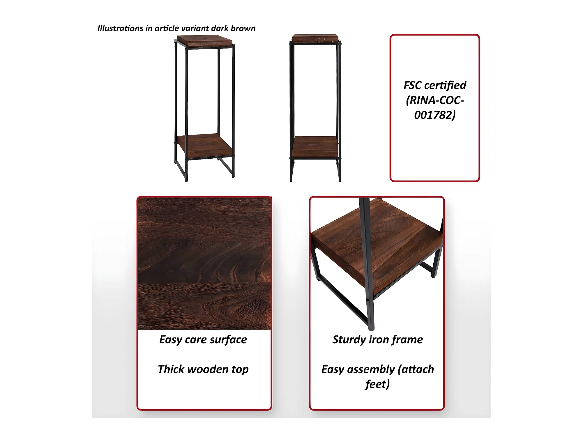 Table pour fleurs MCW-K71, gris foncé, 82cm
