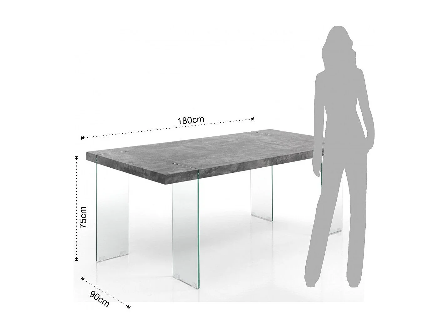 Table rectangle en bois MDF gris et pieds verre trempé Fady L 180cm
