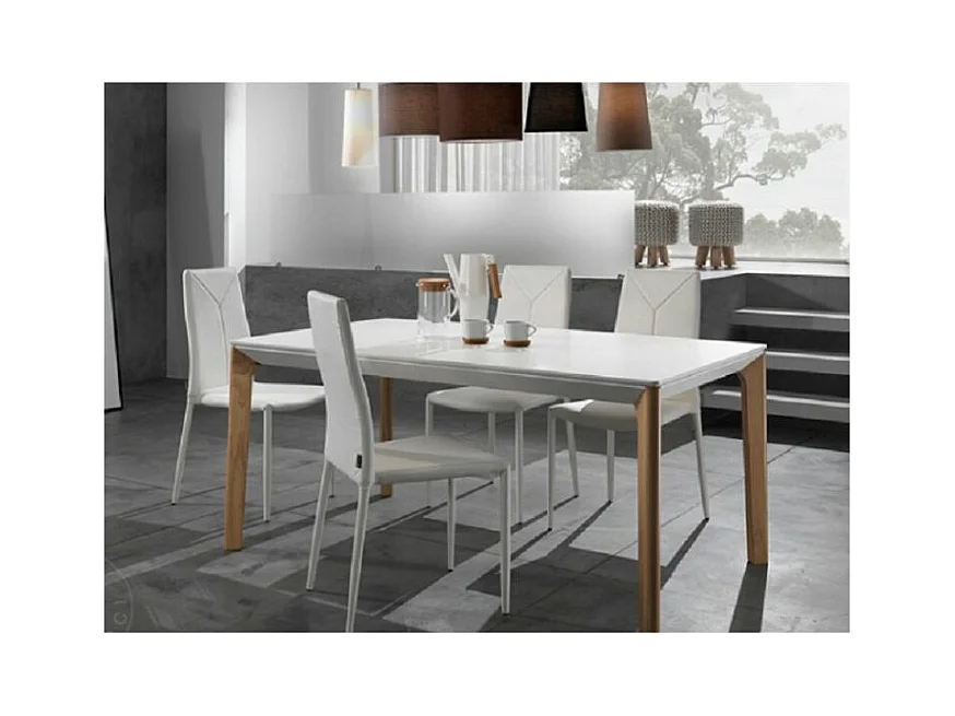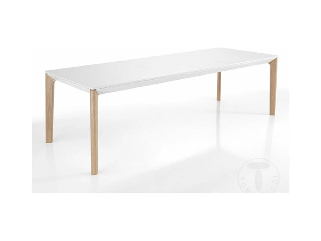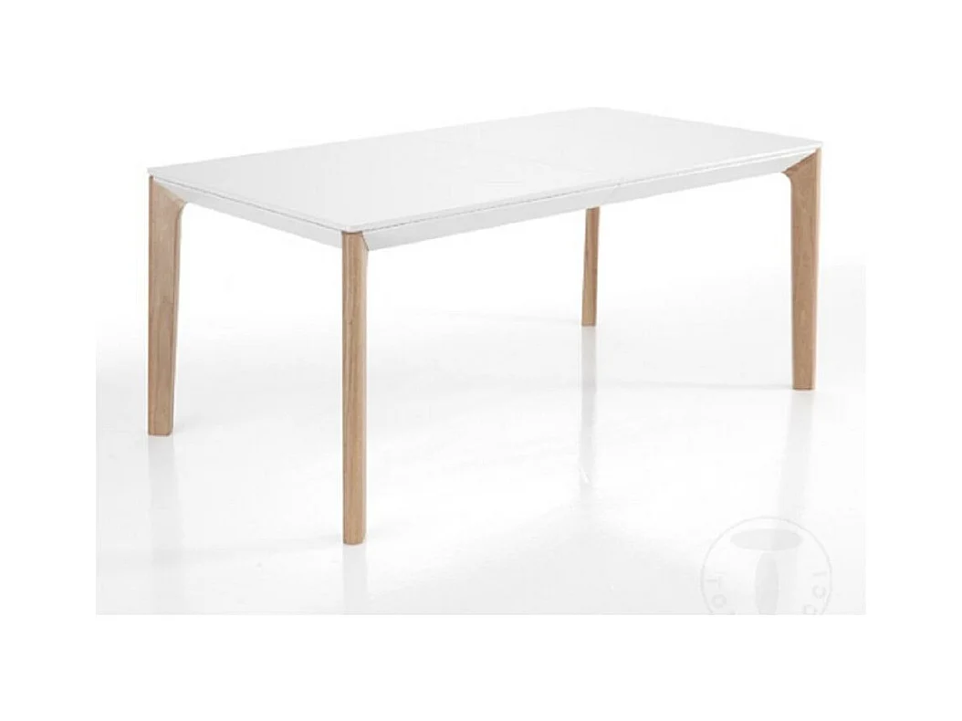 Table rectangle extensible bois massif et bois MDF blanc Mia L 160-240cm