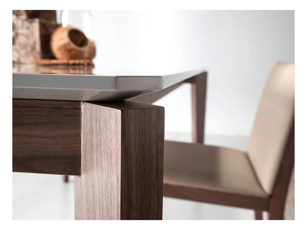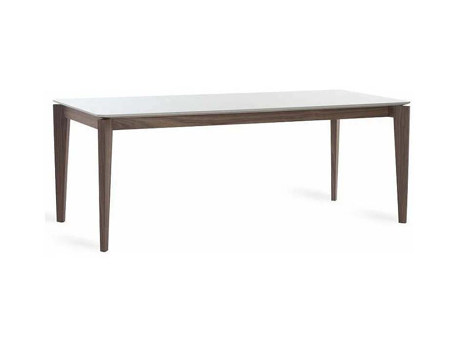 Table rectangulaire bois laqué et pieds bois noyer Muza-Couleur Crystal