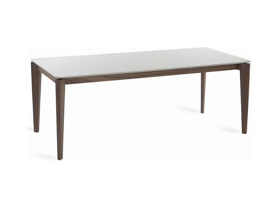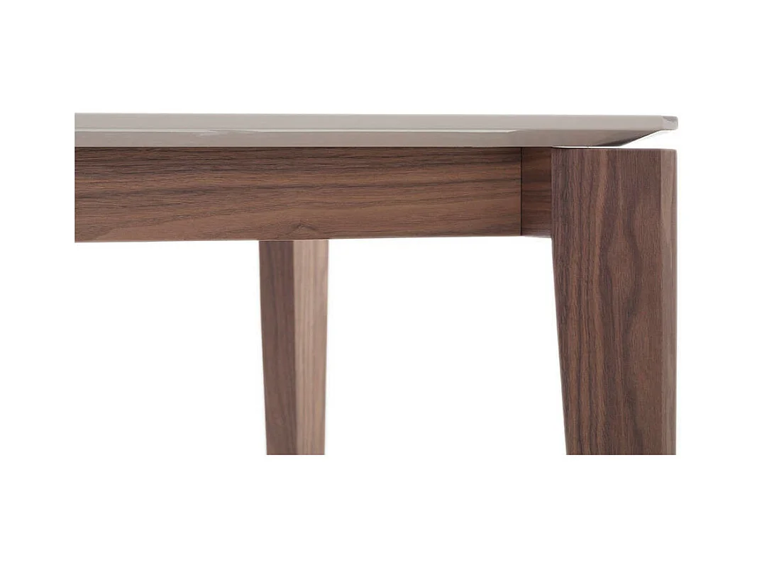 Table rectangulaire bois laqué et pieds bois noyer Muza-Couleur Dune