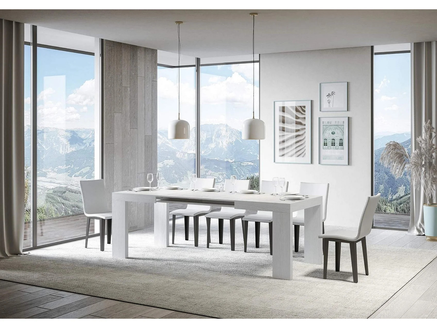 Table à manger extensible bois Ribo-Couleur Blanc-4 pieds-5 rallonges fines-160 à 420cm
