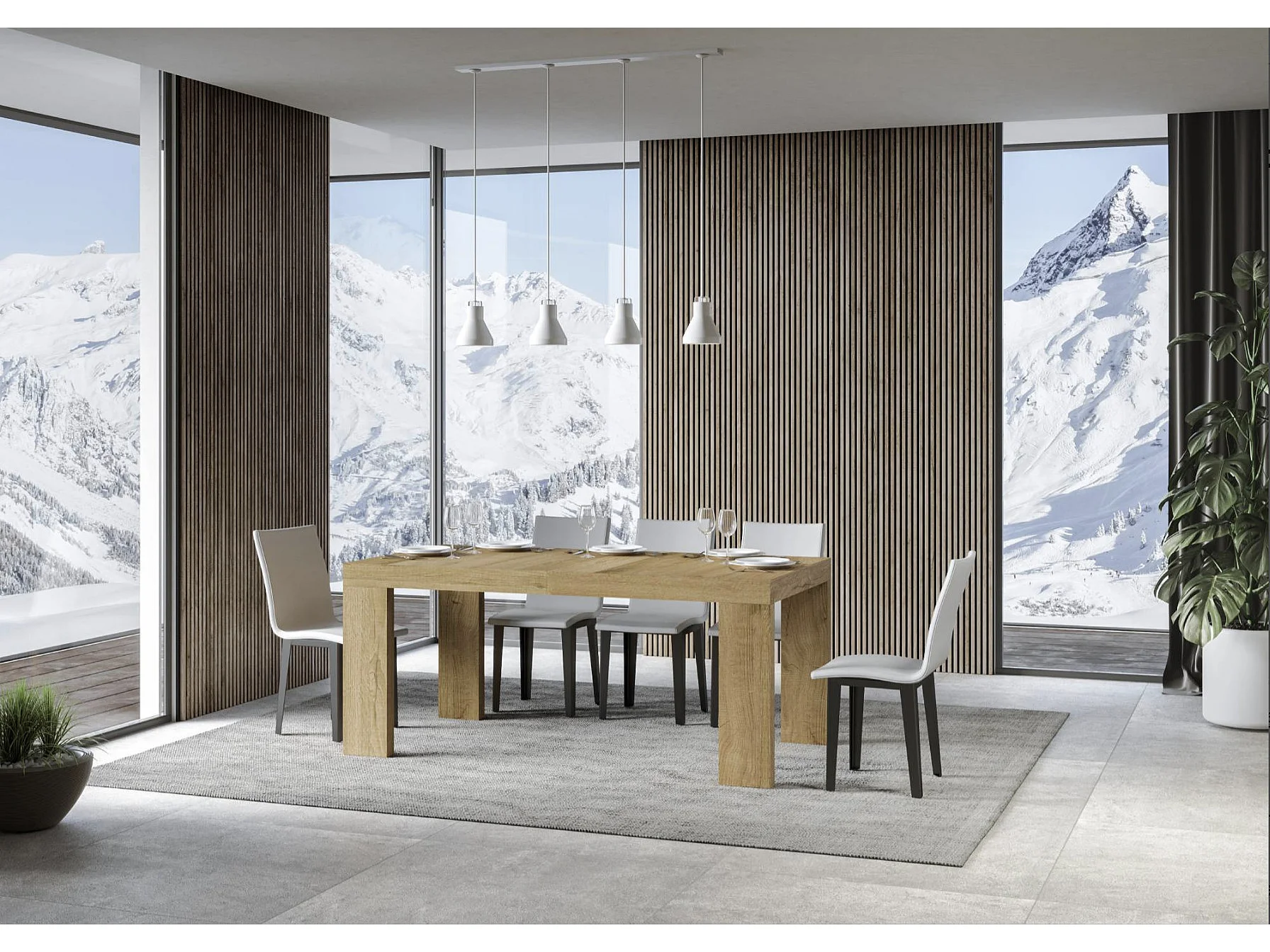 Table à manger extensible bois Ribo-Couleur Blanc-4 pieds-2 rallonges fines-180 à 284cm