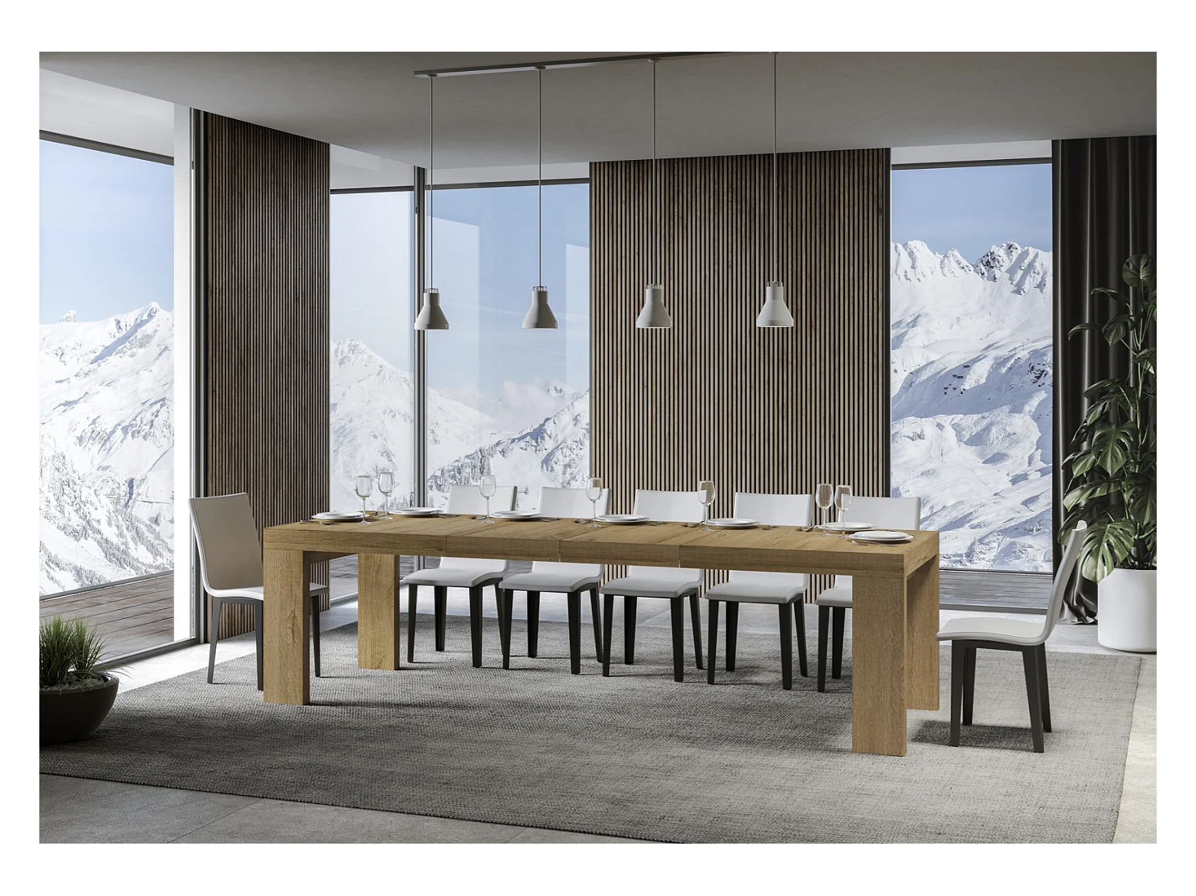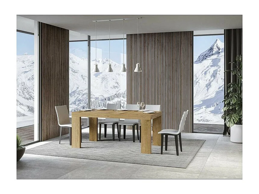 Table à manger extensible bois Ribo-Couleur Naturel-4 pieds-5 rallonges fines-160 à 420cm