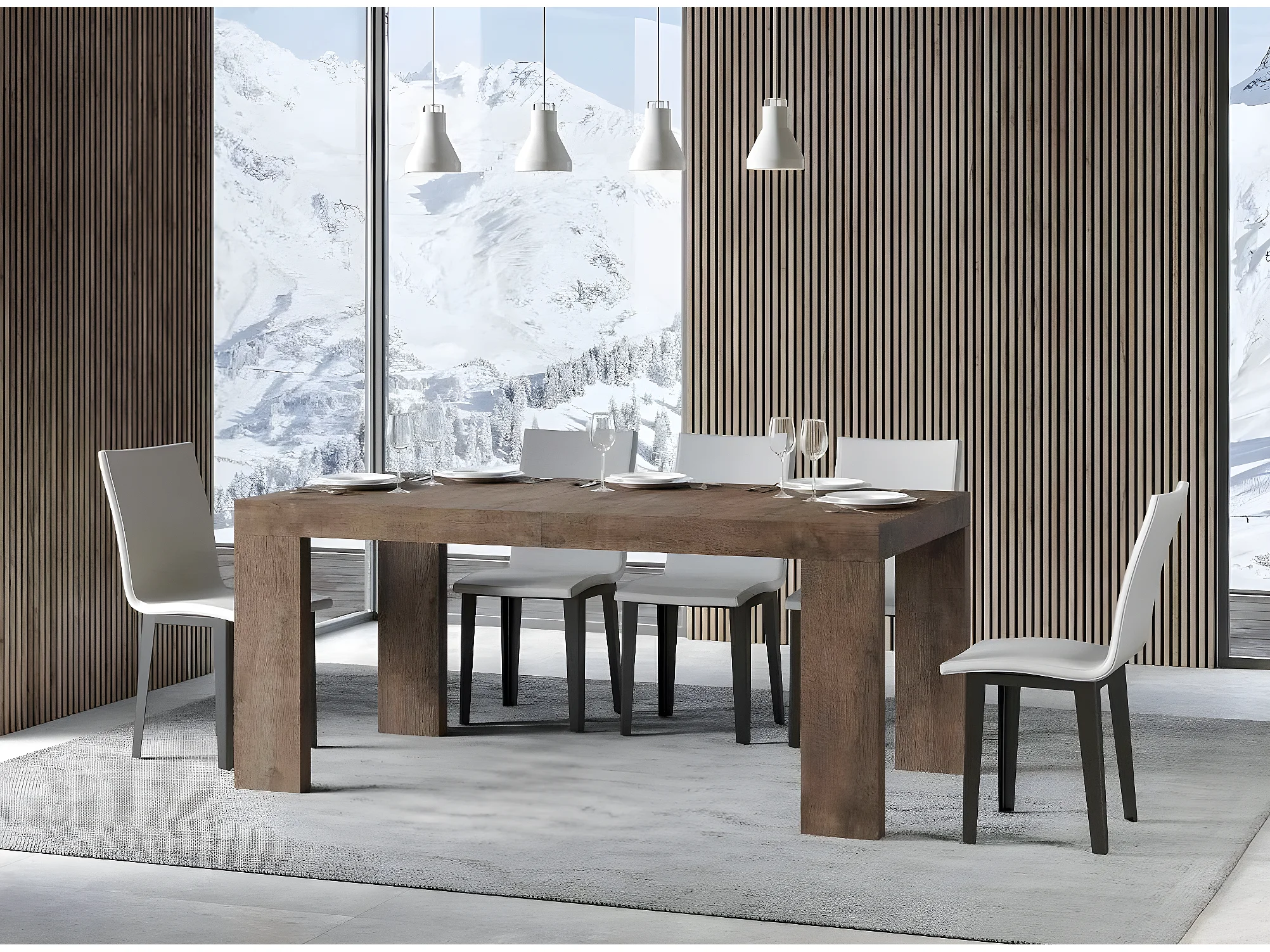 Table à manger extensible Tiroz-Couleur Marron-4 pieds-5 rallonges fines-130 à 390cm