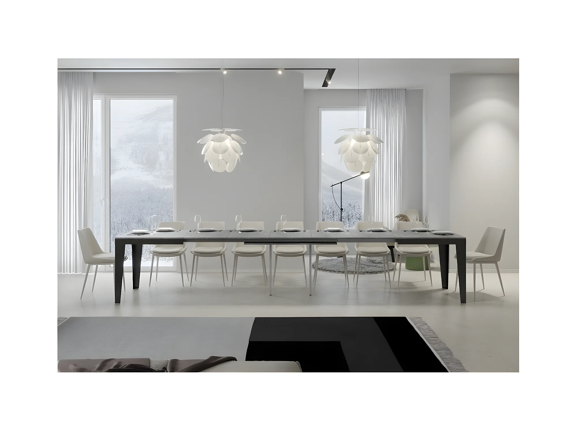 Table extensible 90x120/380 cm Volantis Premium structure blanc ciment