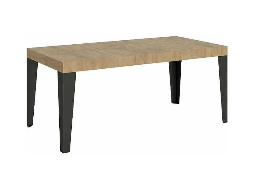Table rectangulaire extensible 8 à 14 places L 180 à 284cm chêne clair et pieds métal anthracite Flavio
