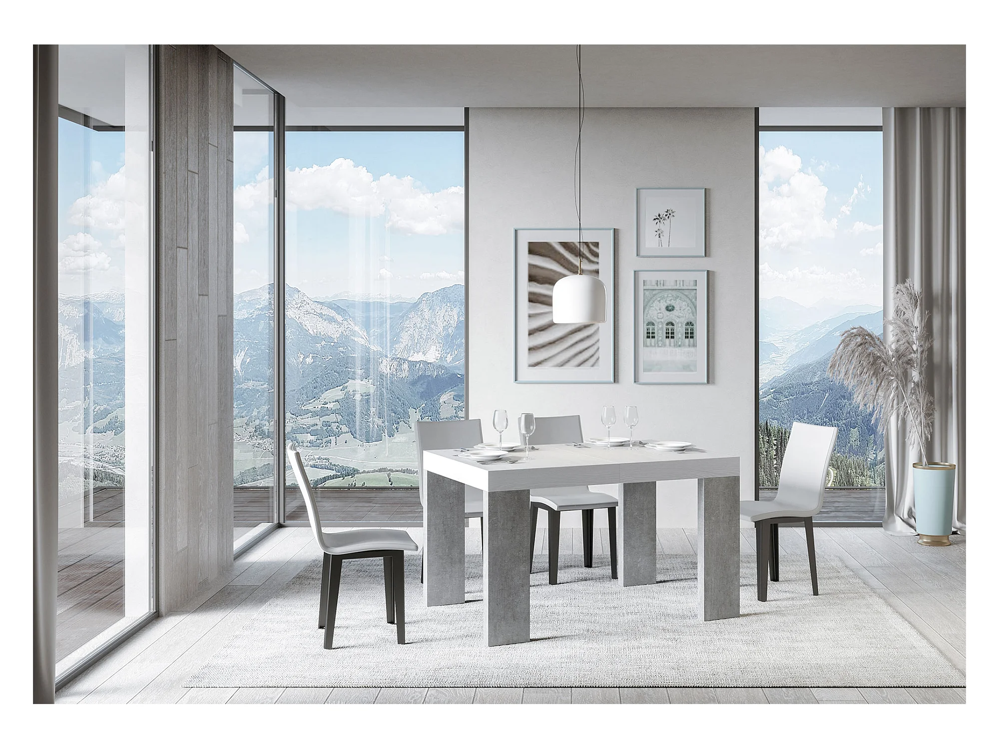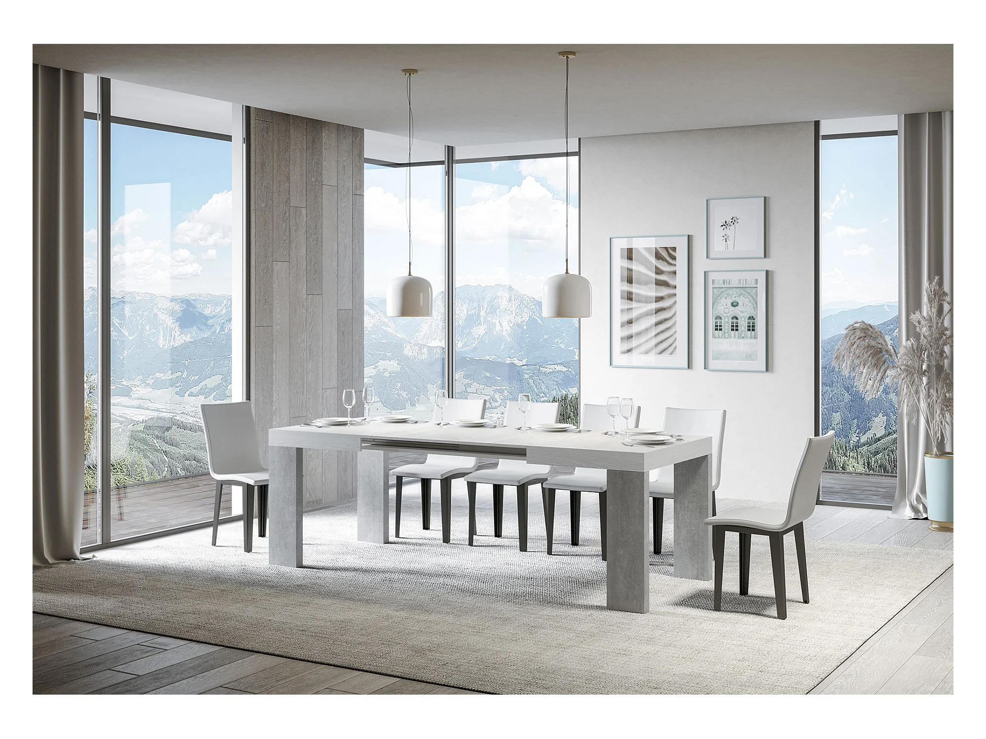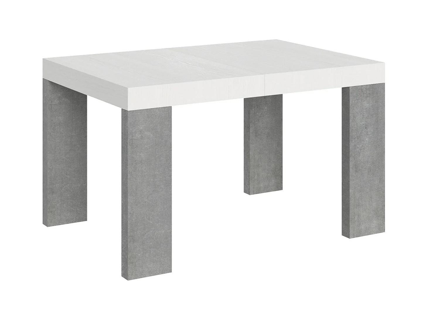 Table rectangulaire extensible blanche et gris béton 130 à 234cm Ribo-Sur roulettes
