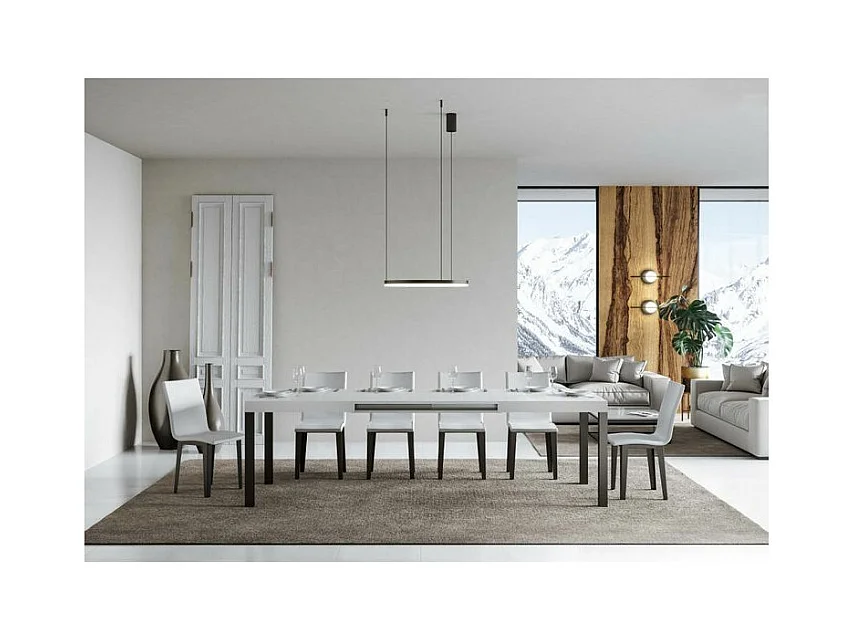 Table rectangulaire extensible orientale 6 à 20 personnes L 180 à 440cm blanc laqué et cadre métal anthracite Zakary