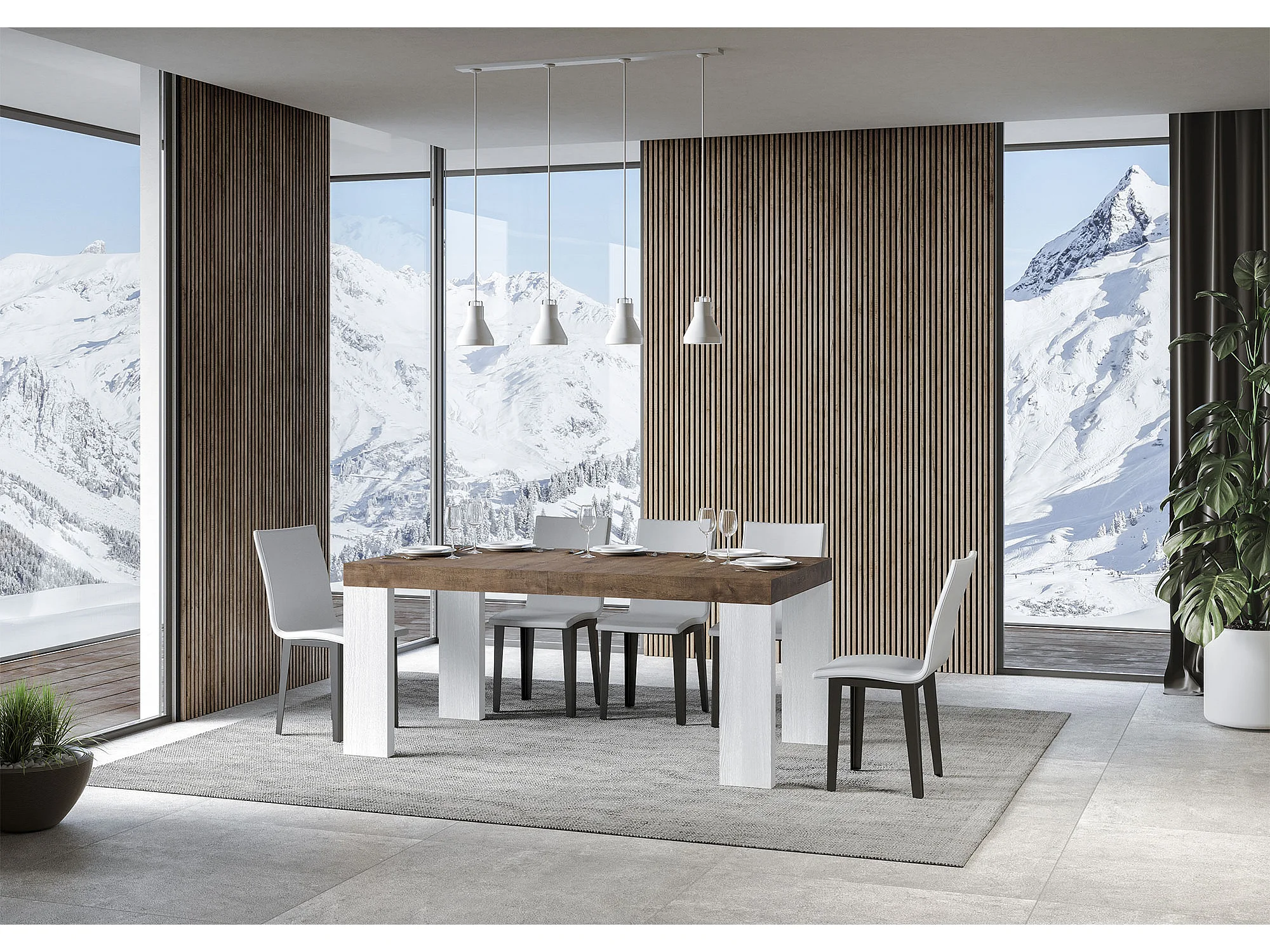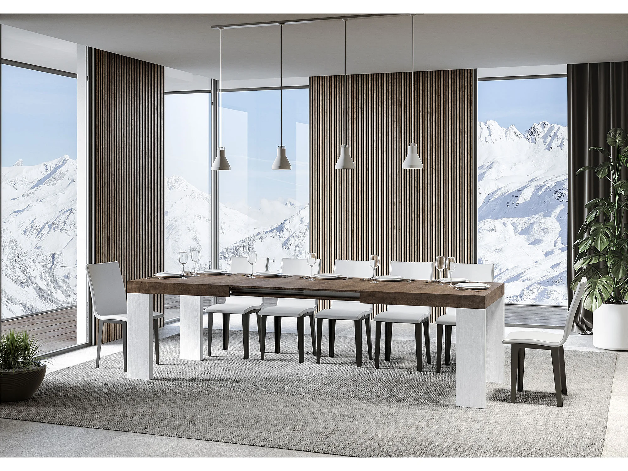 Table rectangulaire extensible bois noyer et blanc 160 à 420cm Ribo-Pied et support sur roulettes