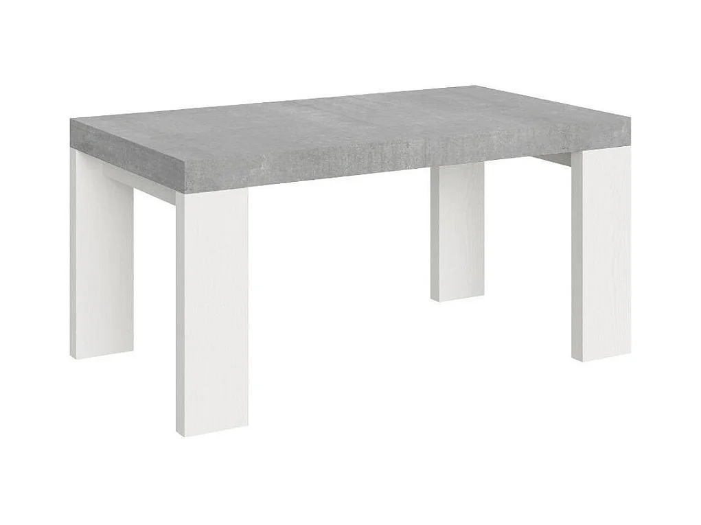 Table rectangulaire extensible gris béton et blanc 160 à 420cm Ribo-Support 4 pieds