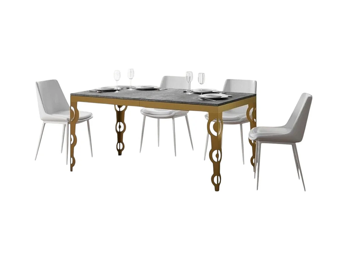 Table rectangulaire extensible orientale 6 à 10 personnes L 120 à 224cm gris béton et cadre métal doré Kazay
