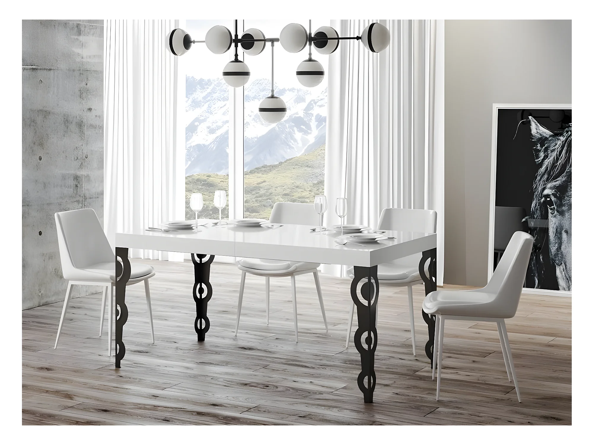 Table à manger extensible Tiroz-Couleur Blanc-4 pieds-2 rallonges épaisses-180 à 284cm