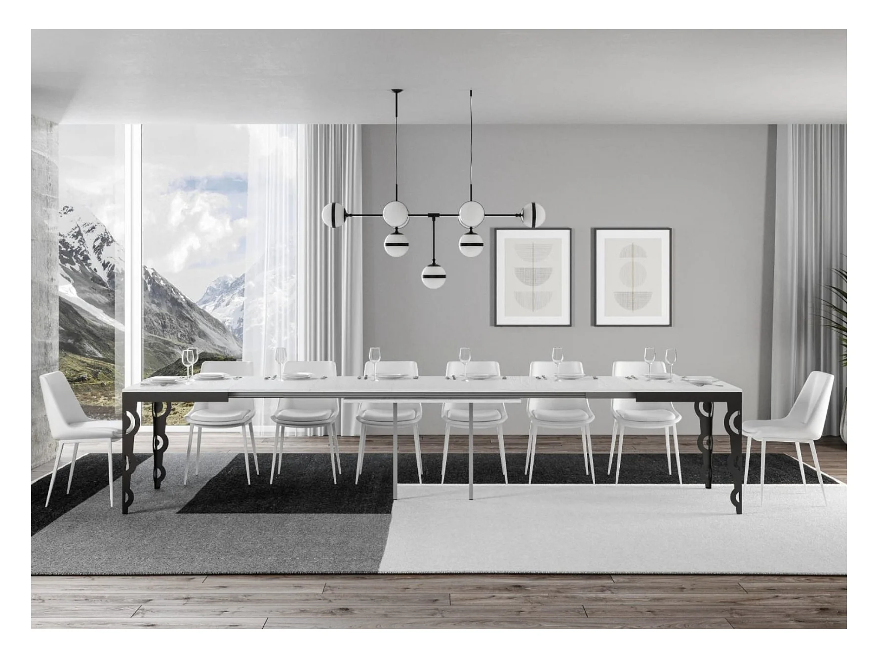 Table extensible 6 à 18 personnes blanche et pieds entrelacés anthracite L 160 à 420cm Artemis