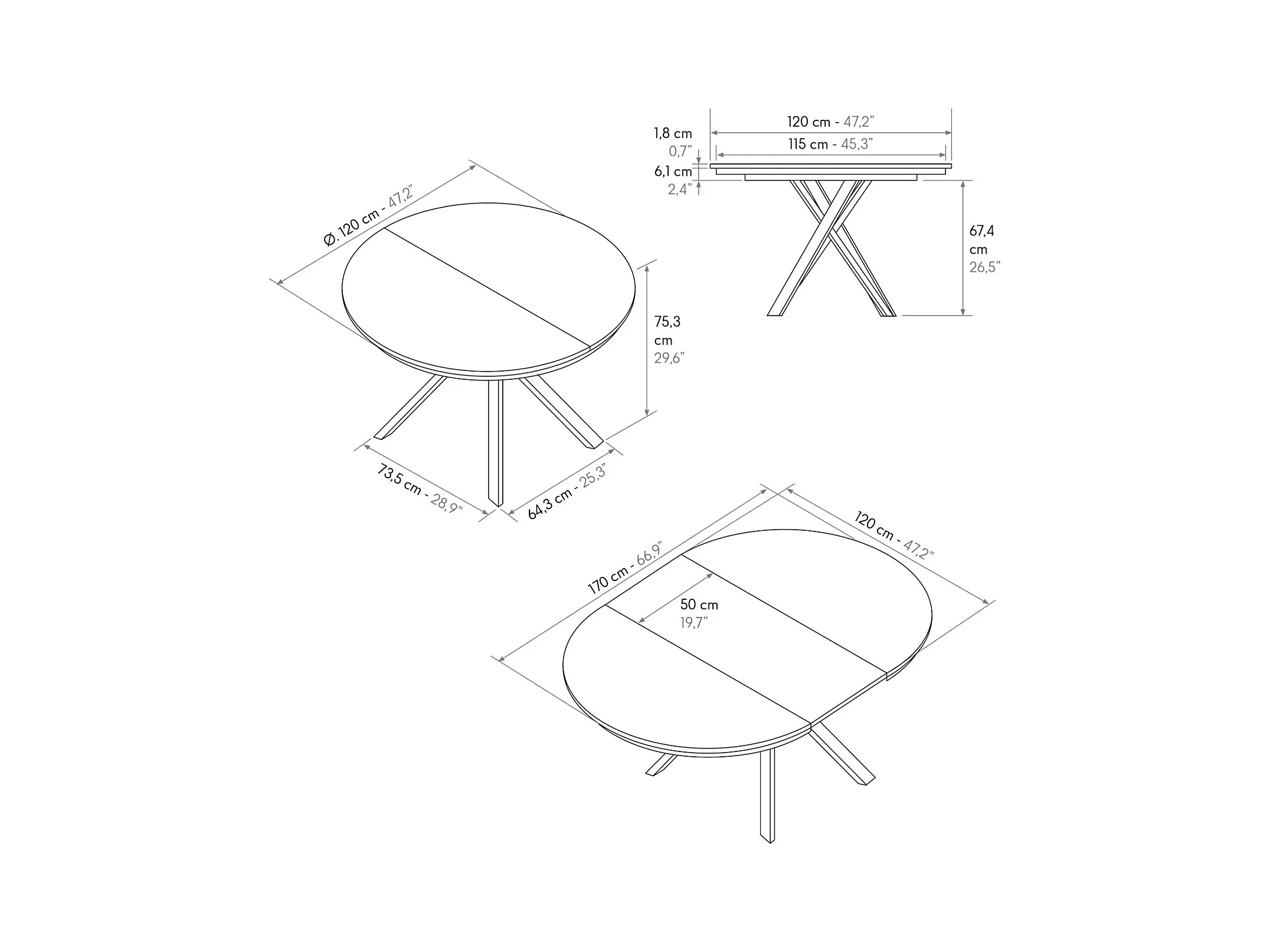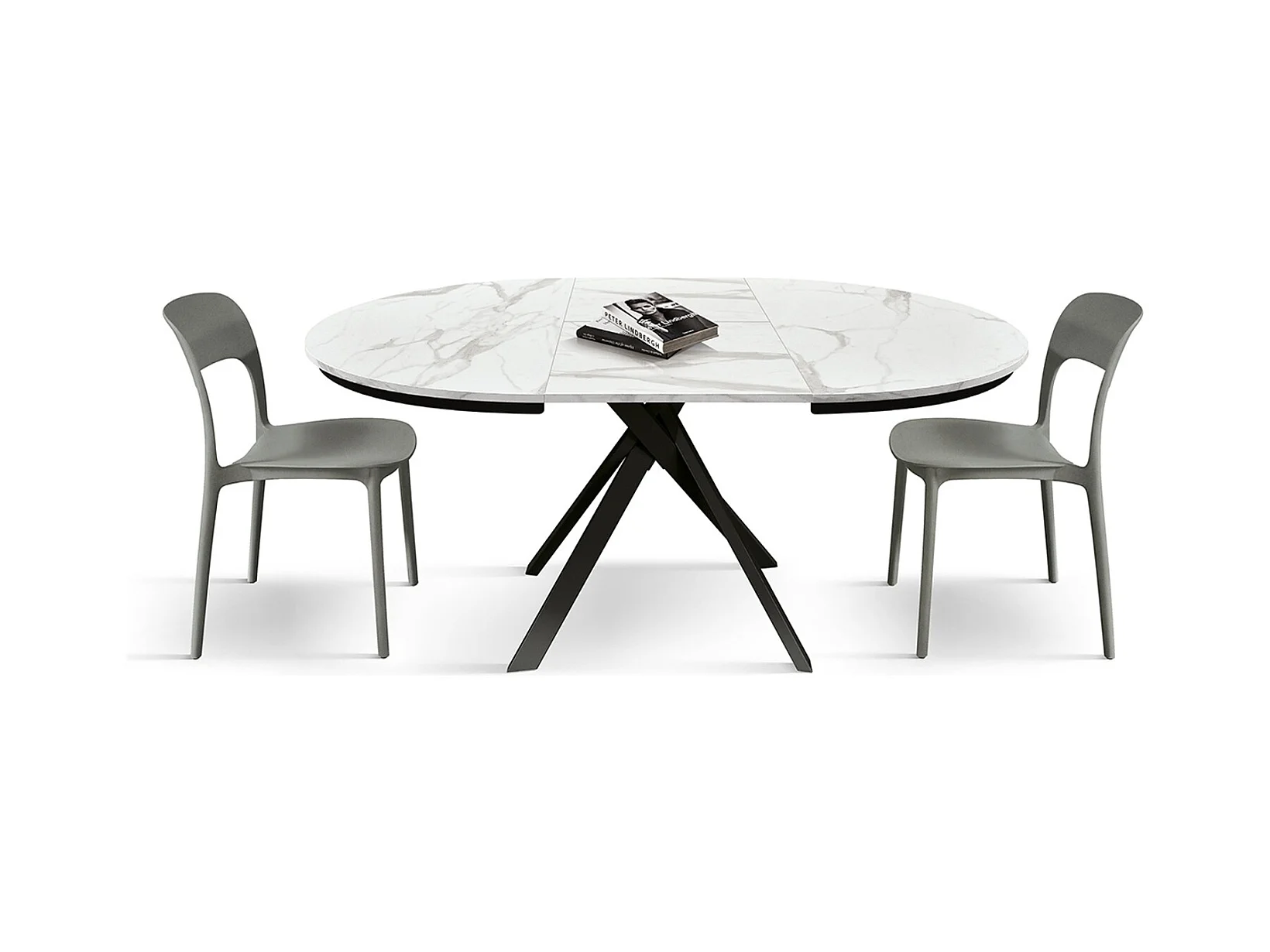 Table ronde en bois, finition blanche, pieds noirs Ø120xH75.3-170x120x75.3 - PANTELLERIA