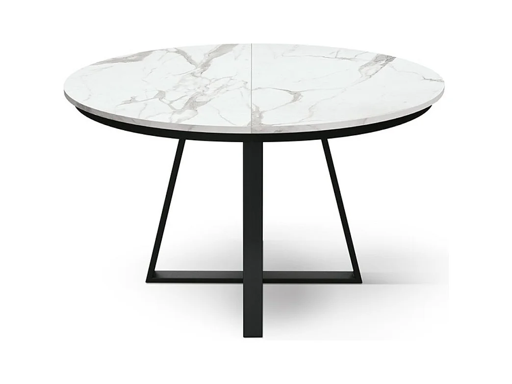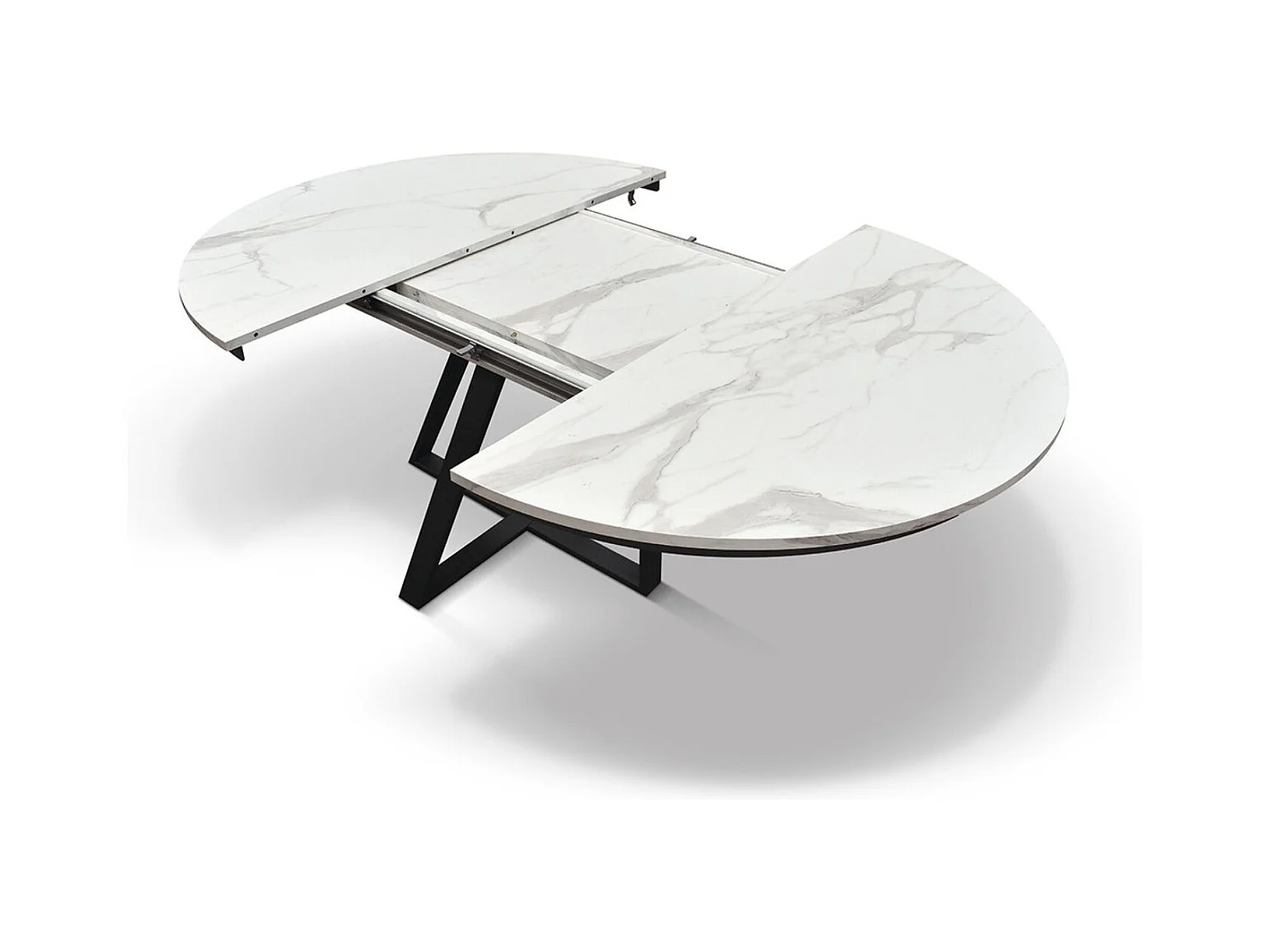 Table ronde en bois, finition blanche, pieds noirs Ø120xH75.3-170x120x75.3 - PANTELLERIA