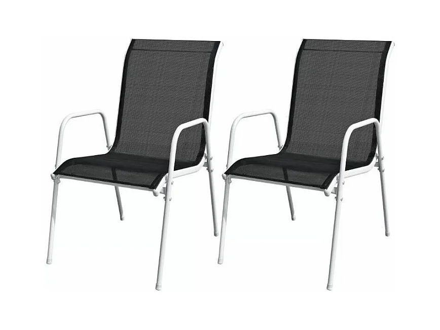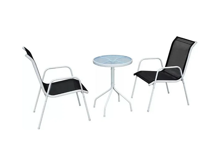 Table ronde et 2 chaises de jardin métal noir et blanc Castle