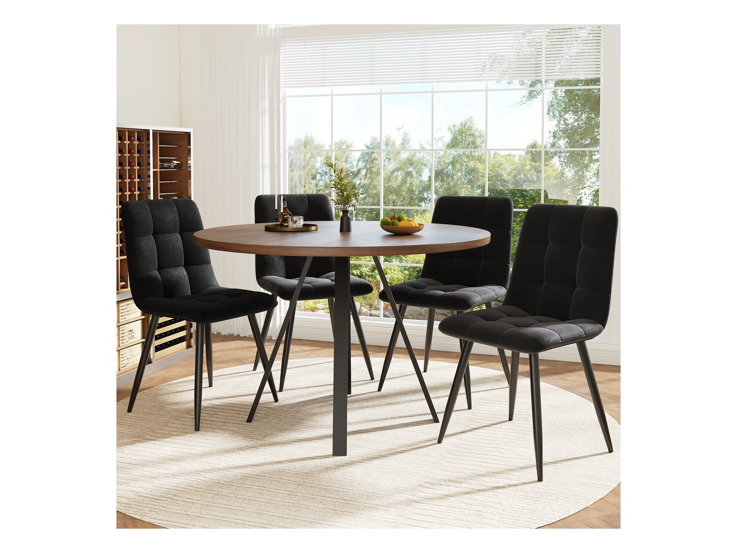 Table ronde MDF, pieds métalliques croisés, extensible, finition noyer et noire, pour cuisine et salle à manger (120-160x80x75 cm)