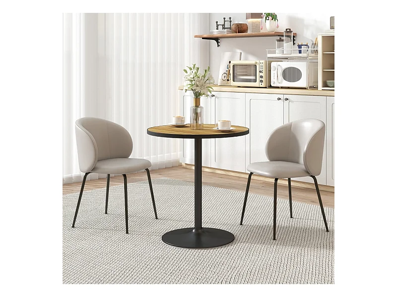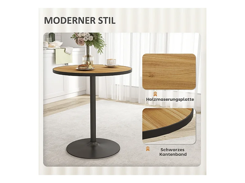 Table ronde moderne, plateau imitation bois, base stable, chêne (70x70x76cm)
