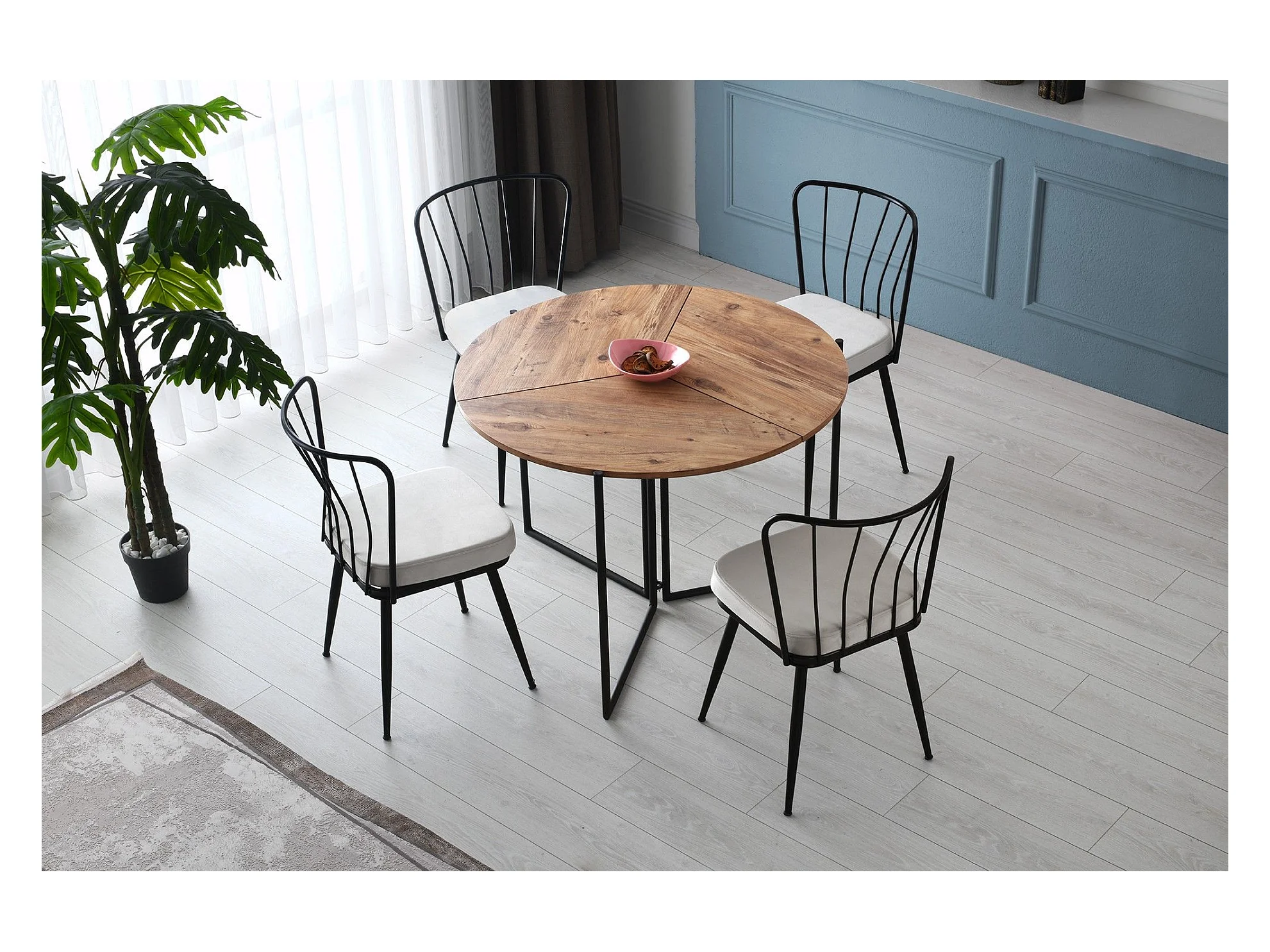 Table ronde pliable gain de place Origami Ø100cm Chêne clair et Métal Noir